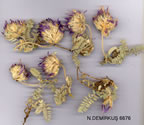 | A. lineatus Lam., Encycl. 1:314 (1783). Caulescent herb with woody caudices and prostrate or ascending stems to 12 cm. Leaves l-4(-7) cm; leaflets elliptic to narrowly elliptic, retuse, obtuse or acute, usually densely simple-pilose, 8-12(-16)-paired; stipules 6-10 mm narrowly triangular. Flowers in dense, 6-25-flowered spikes which lengthen with age. Bracts 5-10 mm, linear to narrowly ovate. Calyx 12-17 mm, tubular at first, becoming globose-inflated, long simple-white-pilose, sometimes with black hairs; teeth 3-7 mm, linear, black- and white-hairy. Corolla white, pink or mauve; standard 18-30 mm. Legumes ovoid, densely long-pilose, mucronate, included in calyx. 1. Leaflets 1•0-l•5(-2•0) mm broad var. jildisianus 1. Leaflets 2-4 mm broad 2. Calyx teeth 3-4 mm; standard 18-25 mm var. lineatus 2. Calyx teeth 4-7 mm; standard 23-30 mm var. longidens var. longidens (Freyn) Matthews, comb. et stat. nov. Syn: A. longidens Freyn in Bull. Herb. Boiss. 3:181 (1895). Fl. 5-9. Rocky slopes, high meadows, 1280-2800 m. Type: (B7 Erzincan) Egin (Kemaliye). In lapidosis ad Ischek-Meden die 18 junio 1890, Sintenis 2658 (K! E!). Mainly E. & N.E. Anatolia. A6 Sivas: W. side of Köse Da., between Şerefiye and Suşehri, 1880 m, Hub.-Mor. 13013! A7 Giresun: between Şebinkarahisar and Giresun 1700 m, Sın. & Hend. 5801! B6 Sivas: E. side of pass between Pinarbaşi and Gürün, 1830 m. D. 21965! Kayseri: Sopan Da., 24 km S of Pinarbaşi, 1820 m, Hub.-Mor. 10679! B7Tunceli: Munzur Da; above Ovacık, 2200 m, D. 31216! B9 Van: lspiriz Da.. 20 km NNW of Başkale. 2800 m, Cheese & Watson 1514! C6 Malatya: d. Besni, 8 km from Sürgü to Perveri, 1280 m, Hub.-Mor, 14544! N. Iran. The species is centred in the Irano- Turanian region. |