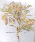 | A. trifoliastrum Hub.-Mor. & Matthews in Notes R.B.G. Edinb. 29: 301 (1969). Dwarf shrub with short stems. Leaves 2-4 cm; rachis spiny; leaflets 15-25 mm. lanceolate-elliptic, acute. spine-tipped, glabrous above, sparsely simple-sericeous below, 2-3-paired: stipules 13-16 mm, lanceolate, membranous, united at base, glabrous, ciliate. Peduncles scapiform, shorter than leaves, long white-pilose. Flowers in globose, 15-40-flowered spikes. Bracts 9-12 mm, ovate, acuminate, paleaceous, glabrous, ciliate. Calyx 13-15 mm, tubular at first, becoming inflated, long simple-white-pilose; teeth 5-6 mm. Corolla whitish; standard 15-18 mm. Ovary elliptic, compressed, densely and shortly simple-white-pilose. Legume unknown. Fl 6-7. Steppe, 1850-1950 m. Type: [Turkey B9] d. Van, Van-Hoşap, 20 km N von Van, 1950 m, 8 vii 1951, Renz & Simon, Hub.-Mor. 11467 (holo. Hb. Hub.-Mor.!). E. Anatolia, rare. B9 Van: 7 km from Van to Erçek, 1850 m, D. 44283! Endemic; Ir.-Tur. element. Probably related to A. woronowii. |
