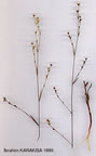 | B. boissieri Post in J. Linn. Soc.(Bot.) 24:426 (1888). Ic: Wolff, op. cit. 86 (1910); Ark. Bot. 5(l):31O (1959). Figure 9, p. 401. Annual, 20-200 cm or more, with strong erect main stem, branches of very variable length, lateral umbels depauperate. Leaves 2-12 cm long, 1 -5-5 mm broad. Rays 2-4, very unequal, 2-25 mm, all erect, non-divergent. Bracts 3, 2-5-8 mm. Bracteoles 2-5-5 mm long, 0-5-0-7 mm broad, keeled, serrate at sides and midrib, long-ripped. Umbellules (l-)3-4-flowered, pedicels 0-5-1-5 mm. Petals dull yellow, 0-55-0-8 mm, finely granulose-papillate at the almost straight bend, indexed lobe broad, bifid. Anthers 0-3-0-4 mm. Stylopodium 0-7-0-9 mm, styles 0-3 mm. Fruit 2-5 mm or more, rounded, retuse, not seen ripe. Fl. 8-9. Open forests, scrub, banks, 240-1500 m. . Type: [Turkey C5/6] in sylvaticis montis Amani, G. Post (G!). N. & adjacent Inner Anatolia, Amanus; local. A4 Kastamonu: Kastamonu to inebolu, 900 m, Khan et al 604! Aβ Tokat: Tokat to Niksar, D. 24885! A7 Gümüşane: Gümüşane, 1006 m, Balls 2019! Ciganadagh, between Cigana and Demirschikoei, Sint. 1890:3412! C6 Hatay: Amanus, 240-915 m, Haradj. 4673! Latakia, Georgia. |