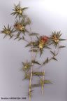 Plant 17-60(-100) cm. Stems straw-coloured, villous to arachnoid. Cauline leaves glandular-lanate, greyish-green, 20-60x2-13 mm, ovate-acuminate, amplexicaul, margins spiny-pinnatifid. Capitula in lax to dense corymbs. Outer phyllaries 2.5-5 cm, 1-2 x length of inner, ± erect to strongly reflexed; median constricted, widened above into an ovate-acuminate, purplish-streaked, fimbriate apical appendage. Flowers purple-pink. Fl 7-8. Steppe, fallow land, dry calcareous soils, banks, s.l.-1250 m.