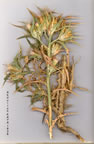 | C. glaucus Bieb., Tabl. Prov. Casp. 118 (1798), emend. Hanelt in Feddes Rep. 67:105 (1963). subsp. glaucus. Syn: Kentrophyllum syriacum Boiss., Diagn. ser. 1(10):98 (1849); Carthamus glaucus var. syriacus (Boiss.) Boiss., Fl. Or. 3:707 (1875) pro parte; C. syriacus (Boiss.) Dinsm. in Post (ed. Dinsm.), Fl. Syria 2:121 (1933) pro parte, non Čelak. (1886). Plant 20-65 cm. Stems brownish to straw-coloured, sparsely to densely villous. Cauline leaves glandular, pubescent to arachnoid, greyish-green, 20-50 x 4-12mm (excl. spines), ovate-acuminate, amplexicaul, margins spiny-pinnatifid. Capitula in usually dense corymbs. Outer phyllaries 15-30 mm, equalling to slightly exceeding inner, erect to patent; median and inner gradually acuminate, not appendaged. Flowers purplish-pink. Fl. 7-9. Disturbed steppe, fallow fields, sand dunes, 10-900 m. Lectotype: [Caucasus] ex Caucasico Schirvanico et ex Iberia a. 1796 et 1807 (LE). Outer & Inner Anatolia E. of 32°E. A5 Samsun: 2 km S. of Havza, 600 m, D. 47744! Sinop: Boyabat, 350 m, D. 38042! Amasya: Suluçro, 630 m, M. Zohary 1071! A6 Samsun: Samsun to Bafra, D. 24966! A7 Sivas: E. of Suşehri, 800 m, D. 32705! B4 Ankara: Yenişehir, Kotte 582! B7 Elaziğ: 70 km E. of Elaziğ, D. 24819! Malatya: Sultan Suyu, 28 km S. of Malatya, 900 m, M.&D. Zohary 2337! C5 Adana: Misis, 90 m, 20 viii 1931, Eig & M.Zohary! Içel: Pompeiopolis (Viranşehir), Bal. 756! C6 Adana: Haruniye, 400 m, D. 16460! Hatay: Hassa, 750 m, Aberdeen Univ. Amanus Exped. K1 747! Maraş: nr Maraş, Hausskn. C8 Mardin: Rişmil, Sint. 1888:1373! External distribution of species: E. Medit., Crimea, Caucasia, W. & N. Iran. C. glaucus subsp. anatolicus (Boiss.) Hanelt, op. cit. 112 {Kentrophyllum anatoli-cum Boiss., Diagn. ser. 1(6): 113, 1845), which is distinguished from subsp. glaucus by its much larger leaves and broader capitula, is native to Palestine. Handel-Mazzetti's record of this taxon from N. Anatolia is not accepted, as it is based on a very poor, unidentifiable specimen (A5 Samsun: nr Samsun, c. 50 m, Hand.-Mazz. 124!). |