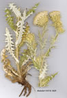 | C. echinus (Bieb.) Hand.-Mazz. in Ann. Nat. Hofmus. Wien 23:197 (1909). Syn: Carlina echinus Bieb., Beschr. Land. Flüss. Terek Kur. Kasp. Meere 199 (1800); Cirsium sderanthum Bieb., Fl. Taur. - Cauc. 3:559 (1819); Echenais carlinoides Cass., Dict. Sci. Nat. 14:171 (1819). Ic: Fl. Azerb. 8: t. 40 (1961). Map 44, p. 389. Biennial, 40-75 cm. Stem solitary, unwinged, rosulate at base with pinnatifid leaves, corymbose-paniculate above. Median cauline leaves oblong-lanceolate, auriculate at base, closely pinnatifid, lobes bearing numerous slender ivory spines up to 8-14 mm, lamina green above, white-tomentellous below. Capitula corym-bosely clustered on densely spiny branches, ± nodding, subtended by numerous spines subequal to involucre. Involucres hemispherical, umbilicate, 17-22 mm. Phyllaries 6-8-seriate, median oblong-lanceolate, widening above into a mem-branous appendage with centre blackish but not or scarcely vittate, margin membranous, ivory and deeply lacerate, midrib running into a pallid 4-6 mm spine. Corollas always white, 16-20 mm. Achenes c. 4.5 mm. Pappus 16-18 mm. Fl. 7-8. Rocky slopes, rarely on shores, (s.l.-)1040-2500 m. Type: [Caucasus] inter Kubam et Schamamchian. Mainly N. and adjacent E. Anatolia. A2(E) Istanbul: Çemkece, Noë (fide Boiss.). A4 Kastamonu: Tosya to Kastamonu, 14 km N. of Ilgaz Da. pass, 1250 m, Hub.-Mor. 12867! A5 Amasya: Ak Da., 1300 m, Bornm. 1888/90:1492, 2894. A6 Ordu: below Çambaşi, 1900 m, Tobey 1258! A7 Gümüşane: Kirkpauli Sint. 1894:7555b! A8 Rize: Başkow (Cimil) to Cermanin Tepe, 2400 m, D. 21018! A9 Kars: Kisir Da. above Susuz, 2000 m, D. 30501! B5 Kayseri: Argaeus (Erciyas Da.), 1900 m, Siehe 1898:205! B6 Sivas: Sivas, 1400 m, Bornm. 2242. B7 Erzincan: Sipikör, Kainikdere, Sint. 1890:2997! B9 Van: Başkale, 2500 m, D. 23732! Transcaucasia, N. & N.W. Iran, Afghanistan. Ir.-Tur. element. One might question the provenance or wild status of Noës specimen from Turkey-in-Europe. A very distinct and attractive species. |