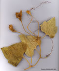 | CUCURBITA L. Trailing or climbing'or (some cultivars) short-stemmed prostrate herbs. Tendrils 3-7-branched, or, in short-stemmed cultivars, much reduced or absent. Flowers large, solitary, yellow, monoecious, Hypanthium campanulate. Corolla distinctly gamopetalous. Stamens with anthers united into an oblong head; connectives rather narrow; anther-thecae flexuous. Fruits often large, firm-walled, fleshy, indehiscent, very variable in size, shape, ornamentation and colour. Seeds elliptic in outline, smooth, compressed, bordered. Five species, all natives of the New World, are widely cultivated, of which three are recorded from Turkey. C. pepo L. is by far the most important; C. maxima Lam. is met with less frequently; C. moschata (Lam.) Poiret only occasionally. The fruits are the gourds, vegetable marrows and pumpkins of commerce (in Turkish, 'kabak"). For details see Zhukovsky, 526-528, f. 273-277 & Pangalo in Zhukovsky, 543-548, t. 10. 1. Fruit-stalk hard, angled, not inflated or corky; flowers not fragrant 2. Plant prickly-setose; fruit-stalk not or little expanded at attachment to fruit; seeds with well-defined rounded margins; sepals lanceolate-subulate C. pepo 2. Plant rather softly hispid; fruit-stalk markedly expanded at attachment to fruit; seeds with thin wavy or ragged, often hyaline, margins; sepals strap-shaped, parallel-sided, or with expanded tips C. moschata 1. Fruit-stalk rather soft, not angled, inflated and corky; flowers faintly fragrant C. maxima |