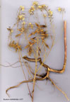 | I. tinctoria L., Sp. Pl., 670 (1753). Syn: I. canescens DC. in Lam. & DC. Fl. Fγ., 598 (1815)! Biennial or shortly perennial. Stem 40-90 cm, glabrous or hirsute, subterete, laxly paniculate with branches coming off at more than 40° . Leaves hirsute. pubescent or glabrous, thin; basal leaves entire or weakly dentate; median stem leaves oblong or oblong-lanceolate with vertical triangular-lanceolate auricles. Flowers 3-4 mm, sepals glabrous. Fruits 10-20x2-5 mm. tapering from near apex to base, or oblong, glabrous or puberulent, wing thick, as wide or narrower than the median loculus (rarely wider), midrib slender. - A very polymorphic species of uncertain limits; the following subspecies may be provisionally recognised in Turkey: 1. Fruit 15-20 x 4-5 mm, gradually tapering from near apex to base, apex rounded or emarginate, glabrous, or with a puberulent loculus subsp. tinctoria 1. Fruit 10-15 x 2-4 mm 2. Fruit 12-15 x 2.5-4 mm, tapering from near apex to base, apex rounded or emarginate, usually puberulent-tomentose throughout subsp. tomentella 2. Fruit c. 10 x 2.5-3 mm, narrowly oblong, rounded at apex and base, glabrous or puberulent subsp. corymbosa subsp. tomentella (Boiss.) Davis in Notes R.B.G. Edinb., 26: 22 (1964). Figure 16, p. 293. Syn: I. tinctoria var. stenocarpa Boiss., Fl. Or., 1: 381 (1867)! I. tomentella Boiss., Diagn., ser. 2(5): 46 (1856)! Fl. 5-8. Rocky slopes, scrub, waste places, 160-2400 m. Type: [Turkey Bl Manisa] in regione media montis Sipyli supra Magnesiam Lydiae, Balansa 85 (K! W!). Scattered in S. & E. Anatolia. B6 Seyhan: Amanus, c. Düldül, 1700-2300 m, Haradj. 2427! B8 Bingöl: Bingöl, 1800 m, Kotschy 1859: 754! B9 Bitlis: crater of Nemrut Da., 2400 m, McNeill 553! C4 Antalya: Alanya. 160 m, Hub.-Mor. 10448! C5 Niğde: Maaden, 1500 m, Siehe 1898: 167 (p.p.)! C9 Hakkari: Cilo Da. below Cilo Y., 2700 m, D. 24242! Greece. Probably much commoner than the Turkish records suggest. Flowering specimens from N. Anatolia may belong here. Alpine material from E. Anatolia is perennant and can be difficult to separate from I. takhtajanii (q.v.). Some Transcaucasian specimens referred by Avetisian (1963) to I. canescens DC. may represent I. tinctoria subsp. toinentella. |
