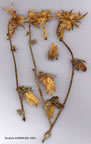 | M. campanuloides L'Hérit. ex Aiton, Hort. Kew. ed. 1, 2:8 (1789). Syn: Mindium campanuloides (L'Hérit. ex Aiton) Rech. fil. & Schiman-Czeika in Fl. Iranica - Campanulaceae 47 (1965); M. isauricum Contandr. et al. in Ann. Univ. Provence, Sci. 46:55 (1971)! Ic: Bot. Mag. 7:219 (1793). Plant stout, 100-150 cm tall. Stem 1-1.5 cm thick at base, erect, patent-coarse-hairy, rarely ± glabrescent in upper part, with racemose or paniculate inflorescence. Leaves coarsely hairy on both sides; basal and lower cauline with long winged petiole, lyrate or pinnately divided, with oblong, ovate lobes; middle and upper cauline sessile, ± amplexicaul, oblong to broadly ovate. Flowers sub-solitary, 2-4 cm, pedicellate, nodding. Calyx lobes 8-10 mm, appendages 2-4 mm, stiffly hairy on margin and middle nerve outside. Corolla divided to f, lobeslingulate, 25-45 mm, reflexed, stiffly hairy outside on middle nerve. Style 30-40 mm, stiffly hairy in lower ½ . Filament base broadly ovate, papillose on margins. Seeds 1 x 0.4 mm. 2n = 30. Fl. 5-8. Rocky slopes, dry open stony places, 10-1700 m. Type: in Syria, Michaux. S. & rarely C. Anatolia. B6 Kayseri: hills W. of Césarée (Kayseri), 1250 m, 12 viii 1856, Bal.! C3 Antalya: Side, 10 m, Sorger 65-34-1! C4 Içel: 6 km S. of Uzuncabıırç, 500 m, Sorger 71-25-10! Konya: 26 km S.E. from Ermenek to Mut, 880 m, Hub.-Mor. 16986. C5 Konya: Ermenek to Mut, 1 100 m, 1970, Quézel et al. (type of M. isauricum)! Niğde: ridge_N.E. of Maden, 1525 m, Darrah 452! Içel: Bouloukli, nr Mersin, Bal. 629! Adana: Pozanti above Adana, 760 m, 1917, Christian! C6 Maraş: Maraş to Göksun road, 1300 m, Stn. & Hend. 5553! Malatya: Gölbaşi to Göksun, 73 km N. of Maraş, 1250 m, Hub.-Mor. 11990. Adana: Haruniye (Amanus), 300-400 m, Haradj. 3593! Hatay: nr Ekbés (Egbez), 500-650 m, Haradj. 590! Beilan (Belen), 610 m, Kotschy 1862:222! Gaziantep: Gaziantep to Fevzipaşa, 800 m, Balls 1187. W. Syria. E. Medit. element. Mindium isauricum Contandr. et al. in Ann. Univ. Provence, Sci. 46:55 (1971), described from Ermenek, differs only in its smaller leaves and flowers. It is probably only a dwarf form of M. campanuloides. In general plants of M. campanuloides from the western part of S. Anatolia seem to have smaller flowers than further east. |