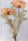 | P. orientale L., Sp. Pl. 508 (1753). Ic. Bot. Mag., 2: t. 57 (1794). Figure 8, p. 223. Stems erect, sub-spreading setose below, adpressed-setose above, 60-90 cm. Leaves distributed along the stem at 3-6 nodes, pinnatisect, the segments oblong- triangular, somewhat toothed. Buds ovoid to broadly ovoid, 2-3 cm. Petals 4, 4.5-9 cm, scarlet, immaculate, or with a blotch broader than long at the base. Filaments dilated. Capsule subglobose, 2-3 cm broad. Disc flat, stigmas 7-16. Two varieties may be recognised: 1. Leaves at 3-6 nodes; petals 7-9 cm, maculate; stigmas 10-16 var. orientale 1. Leaves at 3-4 nodes; petals 4.5-6 cm, immaculate; stigmas 7-13 var. parviflora var. orientale. Fl. 7. Rocky slopes, 1950-2800 m. Type: [Turkey B8 Erzurum] Armenia, Erzurum, Tournefort. Lazistan & Armenia. B8 Erzurum: Aşkale to Bayburt, Kop Da., 1950-2000 m, Hub.-Mor. 10937! B9 Van: d. Başkale, Ispiriz Da., 2800 m, D. 23665! Caucasia, N. Iran. var. parviflora Busch in Fl. Cauc. Crit., 3(4): 42 (1905). Fl. 6-8. Meadows and igneous slopes, 1860-2300 m. Many syntypes from Transcaucasia cited. N. Armenia. A8 Erzurum: Ispir to Ikizdere, 1760 m, Hub.-Mor. 15240! A9 Kars: SW side of Kisir Da., 2300 m. D. 30478! Transcaucasia. An Ir.-Tur. species. |