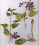 | S. dulcamara L., Sp. PI. 185 (1753). Syn: S. assimile Friv. in Flora 19:436 "(1839); S. dulcamara L. var. indivisum Boiss., Fl. Or. 4:285 (1875); S. pseudoper-sicum Pojark. in Not. Syst. (Leningrad) 17:328 (1955). Ic: Reichb., Ic. Fl. Germ. 20: t. 1633 f. 1, 2 (1861); Ross-Craig, Draw. Brit. PL 6: t. 28 (1965). . Scrambling perennial, subglabrous to pubescent or densely villous. Stem to 200 cm, woody below. Leaves petiolate, ovate to ovate-lanceolate, lamina 3-12 x 2-6 cm, apex acute to acuminate, cordate to truncate at base, entire or rarely some with one or two opposite lobes at base. Calyx 2-3 mm, teeth triangular. Corolla violet, 10-15 mm lobes lanceolate-triangular, recurved, each with 2 green basal spots. Anthers 5 mm, golden yellow. Berry red, shining, ovoid-globose, 7-10 mm. Fl. 5-9. Edges of lakes, marshes or swamps, dry stream beds, s. I. -2300 m. Described from Europe (Hb. Cliff.). Widespread, but rare in W. & S. Anatolia. A1(E) Edirne: Ipsala to Enez, ATBaytop (ISTE 15774)! A2(E) Kirklareli: nr Hamam G., N. & E.Özhatay (ISTE 29986)1 A2(A) Istanbul: Şile, A.Baytop (ISTE 2871)! A3 Sakarya: Arifiye, 30 m, D. 36284! A4 Zonguldak: Karabük, Cildikisik, T.Baytop (ISTE 14189)! A5 Samsun: Bafra, 50 m, Tobey 244! A6 Samsun: Terme, 5 m, Kayacık & Eliçin (ISTO 1867)! A7 Giresun: 27 km S. of Giresun, 500 m, Sorger 69-23-55! A8 Rize: Rize to Eyidere, 20 viii 1945, Kasapligil(!). A9 Kars: 3 km N. of Kars, 1760 m, M.Zohary & Plitm. 2461-18(!). B2 izmir: Boz Da., Gölcük, 1400 m, Sorger 68-15-51! B3 Bilecik: 10 km from Bilecik to Bozüyük, 500 m, Kara-manoğlu 856(!). B4 Ankara: Ankara, Yenişehir, Bağda (ISTE 2231)! B5 Nevşehir: Nar, 1200 m, Roper 114! B6 Maraş: Kabak Tepe, 1906, Mergiandishian. B7 Malatya: Derme pinari, Pamukçuoğlu (EGE 2106)! B? Ağri: 3-5 km from Tutak to Hamur (Murat valley), 1600 m, D. 44044! Cl Aydin: Söke, T.Baytop (ISTE 11121)! C2 Antalya: Elmali, 1200 m, Mutlu 8697! C5 Içel: Bulgardagh (Lolkar Da.), Kotschy 270(!). C6 Malatya: 90 km S.W. of Malatya, 1250 m, Sorger 71-44-16! C9 Siirt: d. Ramuran, Tell Mişar, 760 m, Nâbélek 308. C10 Hakkari: Nehil Çayi, 48-55 km from Hakkari to Yüksekova, 1600-1700 m, D. 44905! Is: Lesvos, Cand. (var. indivisum Boiss.). Temperate Eurasia, N. Africa. Euro-Sib, element. A very variable species,especially in density of indumentum and leaf shape. Stems and leaves may be subglabrous, pubescent or densely hairy. Degree of pubescence seems to be partly correlated with environment; subglabrous plants occur chiefly in wet habitats (swamps, lake margins), while pubescent forms occur on drier river banks, scree, roadsides, etc. Pubescence may increase slightly at higher altitude but is not affected by age. A group with at least some Iobulate leaves can be differentiated from one with entire leaves only. It is not easy to decide into which group a specimen should be referred, as both entire and Iobulate leaves may be present on the same plant. Dense indumentum may be present on specimens of either group. S. pseudopersicum Pojark. is here considered to be a variant of S. dulcamara with densely hairy entire leaves.' |