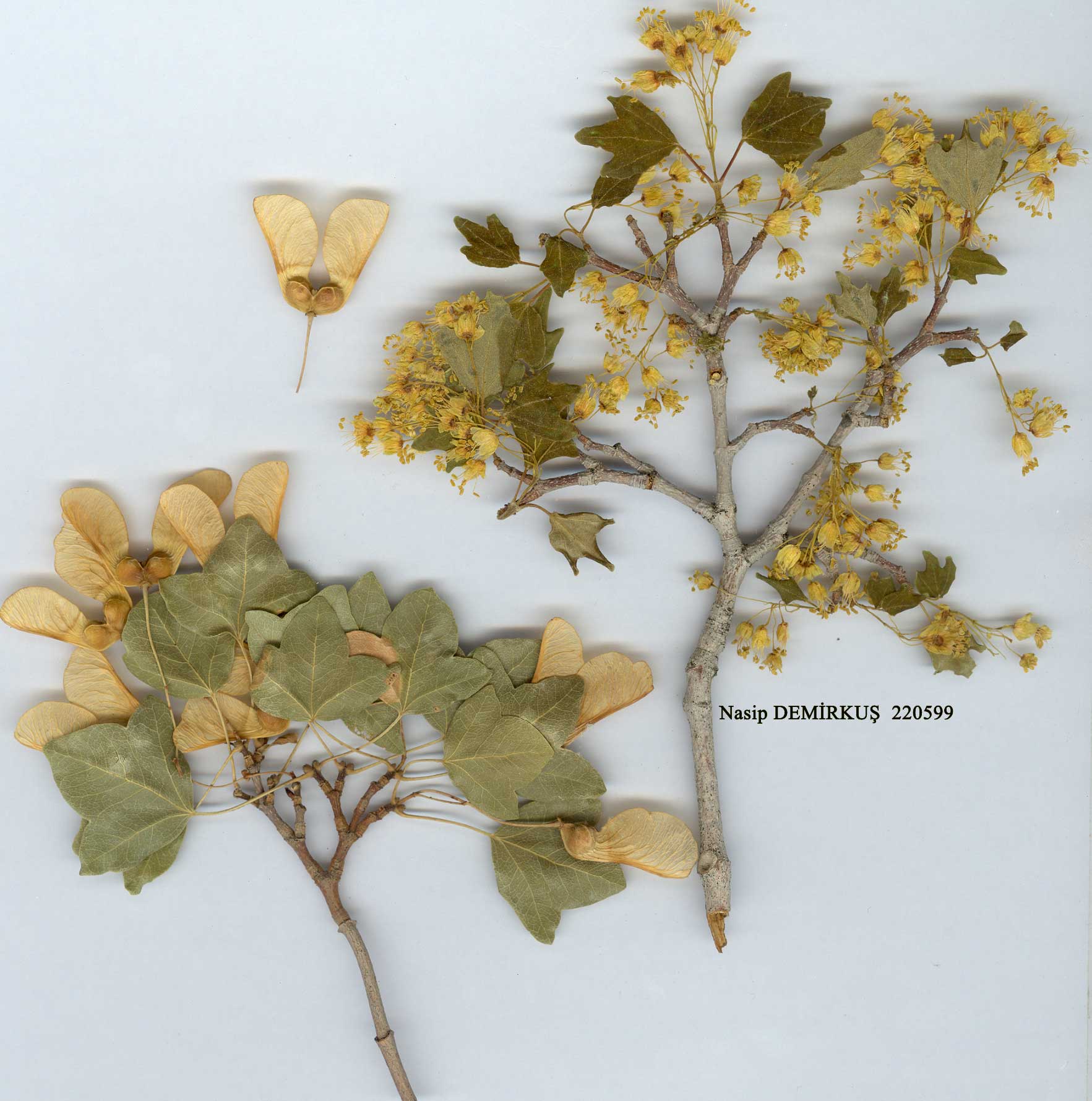 | A. monspessulanum L,, Sp. PL 1056 (1753). Map 49, p. 515. Shrub or small tree up to 7(-12) m. Young branches glabrous, pubescent or villosulous. Leaf blade 3-lobed to ½-? (sometimes 5-lobed or coarsely dentate on sterile shoots), 1.1-6 x 1-7.8 cm, rounded or subcordate at base, lobes triangular-ovate to ovate-oblong, entire or ± denticulate, subcoriaceous, lower surface glabrous, pubescent or tomentose; petiole glabrous, pubescent or tomentose, 5-10 cm, not lactiferous. Flowers in erect, shortly pedunculate, more than 5-flowered corymbs. Fruit wings nearly parallel to divaricate (angle between the outside edges of the wings 20-85°), 14-22 x 5-11 mm; nutlets not compressed, rounded, glabrous, pubescent or tomentose; loculus hairy or glabrous. Fl. 4-5. A very variable species. Five subspecies can be recognised in Turkey; other taxa occur in Iran. 1. Loculus (inside) glabrous; sepals not ciliate; leaves glabrous subsp. monspessulanum 1. Loculus (inside) hairy; sepals ciliate; leaves glabrous or hairy beneath . 2. Nutlets glabrous; leaves glabrous or shortly pubescent beneath 3. Leaves glabrous on both sides 4. Leaf blade divided to f, usually less than 3.5 cm, middle lobe narrowly oblong-ovate, 7-15 mm broad at base subsp. microphyllum 4. Leaf blade divided to halfway, more than 3.5 cm, middle lobe broadly ovate, 17-25 mm broad at base subsp. ibericum 3. Leaves shortly adpressed-pubescent on the lower surface (leaf shape as in subsp. ibericum, 2-6 cm) subsp. cinerascens 2. Nutlets ± tomentose; leaf tomentose beneath subsp. oksalianum subsp. cinerascens (Boiss.) Yalt. in Notes R.B.G. Edinb. 28: 10 (1967). Syn: A. cinerascens Boiss., Diagn. ser. 1(4): 29 (1845)! A. assyriacum Pojark. in Act. Inst. Bot. Acad. Sc. Fasc. 1: 145 (1933). Ic: Schneider, I11. Handb. Laub. 2: f. 158, 159 (1907). Rocky limestone slopes, 1100-2000 m. Type: In Persia australi prope urbem Schiraz, Kotschy 37 (K!). B9 Bitlis: Reşadiye to Kotum, 2000 m, D. 22375! Van: 15 km N of Şatak, D. 22986a! C6 Maraş: Ahir Da., 1200 m, Balls 924! C8 Mardin: 5 km E of Mardin, 1100 m, D. 28598! C9 Hakkari: Zab gorge, 40 km S of Başkale, D. 23846! N. Iraq, W. & S. Iran, S. Transcaucasia. Ir.-Tur. element. A very similar specimen has been seen from Algeria. |