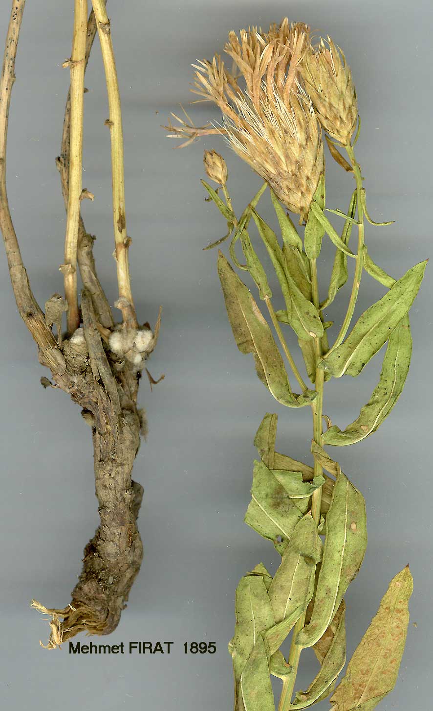 | A. repens (L.) DC, Prodr. 6:663 (1838). Syn: Centaurea repens L., Sp. PL ed. 2:1293 (1763); C. picris Pallas ex Willd., Sp. Pl. 3:2302 (1803); Serratulapicris (Willd.) Bieb., Fl. Taur.-Cauc. 3:546 (1819); Acroptilon picris (Willd.) DC, op. cit. 662. Ic: Jaub. & Spach, I11. Pl. Or. 1: t. 10, 11 (1842); Not. Syst. (Leningrad) 7(3): f. 4A (1937); both as A. picris. Plant erect, 16-40 cm, stems branched from base. Leaves simple, subsessile, elliptic to linear, usually lower and median serrate, upper entire, up to 7 x 2 cm. Involucre up to 1.5x1 cm; outer phyllaries short and broadly oblong, inner longer and narrowly oblong, basal parts almost concealed by appendages; appendages broadly crescentic and often apiculate on median phyllaries, narrowly triangular on innermost, villous, sometimes purplish. Achenes c. 3-4 x 2 mm;pappus c. 8-10 mm. Fl. (5-)6-7(-10). Gravel river terraces, edge of salt lakes, steppe, waste fields, 800-1650 m. Described from the Orient (Hb. Linn. 1030/34, photo!). Mainly Inner & S. Anatolia. A4 Ankara: 36 km N.W. of Ankara, 950 m, Sorger 62-80-33! A5 Kastamonu: Tosya, Karvak-Tschesme (Kavakçeşme), Sint. 1892:4388! A9 Kars: Kağızman to Akçay, 1100-1200 m, D. 46872! B2 Kütahya: Gediz, 850 m, D. 36890! B3 Eskişehir: 11 km E. of Eskişehir, Sorger 64-11-23! B4 Ankara: N.E. shore of Tuz G., 950 m, Darrah 194! B5 Nevşehir: nr Ürgüp, Alava 7161! B7 Erzincan: Baş-taş on Demir Maghara Da., Sint. 1890:2921. B8 Erzurum: 66 km from Hinis to Pasinler, 1650 m, D. 46450! B9 Van: Van, N. foot of castle rock, D. 22633! B10 Ağri: Doğubayazit, 915 m, Hewitt 155! Cl Aydin: Scalanova (Kuşadasi), Schwarz obs. C2/B3 Afyon: Denizli to Çardak, 25 km from Dinar past Aci G., 800-900 m, Dudley (D. 35613)! C2 Antalya: Elmali, 16 vi 1860, Bourgeau 292! C3 Isparta: d. Sütçüler, between Tota beli Y. and Daribükü, 1000 m, D. 15886! C4 Konya: Göksu De. below Ermenek, 800-1000 m, D. 16213! S. Russia, Crimea, Caucasia, N. Iraq, Iran, Afghanistan, Transcaspia, Mongolia. Ir.-Tur. element. A noxious weed in N. America. |