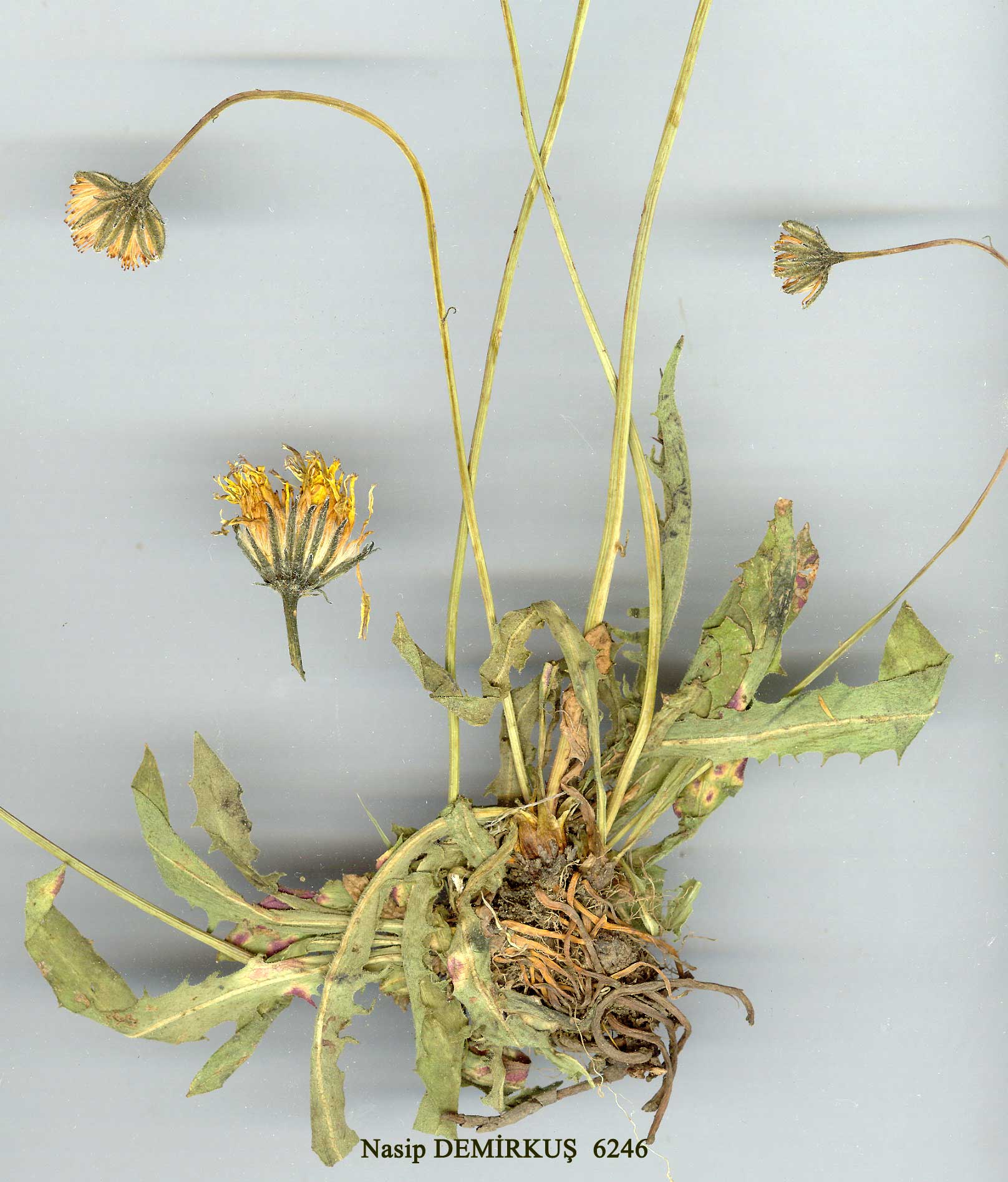 | L. asperrimus (Willd.) J.Ball in Ann. & Mag. Nat. Hist. ser. 2, 6:15 (1850). Syn: Scorzonera asperrima Willd., Sp. Pl. 3:1507 (1803); Asterothrix asperrima (Willd.) Cass., Dict. Sci. Nat. 48:434 (1827); Leontodon masmeneum Boiss. & Bal. in Boiss., Diagn. ser. 2(5): 117 (1856)! Ic: Fl. URSS 29: t. 13 f. 4 (1964). Taprooted perennial. Indumentum of coarse, shortly branched hairs. Stems9-32 cm, simple or sparsely branched at base, occasionally leafy below, swollen beneath capitula, bracteate, hispid. Leaves 4-14 x 0.6-1.5 cm, oblanceolate, sparsely dentate, densely hispid. Involucre narrowly turbinate, 15-30 mm long; phyllaries pluriseriate, linear-acute, regularly imbricate, pubescent to setose, outer ciliate-pectinate. Flowers yellow, pink or purple. Achenes long-beaked, ail pappose. Pappus dirty-white, of 30-50 hairs. Fl. 6-7. Steppe, shaly, gravelly and chalky slopes, 500-2000 m. Type: [Turkey] Galatia (B-Willd. 14523, photo!). Mainly W., S. & Inner Anatolia. A4 Zonguldak: nr Karabük, Bozakman & Fitz 719! A5 Amasya: Ak Da. above Zefe Köy, 1100 m, Tobey 1190! B1 Izmir: Yamanlar Da., 600-800 m, Bornm. 9695. B2 Kütahya: Gediz, 850 m, D. 36631! B3 Afyon: nr Afyonkarahisar, 1100 m, Bornm. 1899:5230. B4 Ankara: 9 km S. of Ankara, M.Zohary & Orshan 28143! B5 Kayseri: nr Ürgüp, Alava 7142! B6 Sivas: 2 km S.E. of Sincan, 1500 m, Sorger 70-26-9! B7 Malatya: 20 km from Arapkir to Malatya, 1400 m, Hub.-Mor. 9478! B8 Erzurum: Mamahatun to Yeniköy, 1700-2000 m, Tchihatcheff. B9 Van: 33 km from Gevaş to Tatvan, 1940 m, D. 46046! C2 Denizli: Honaz Da., 1250 m, Sorger 65-15-52! C3 Burdur, Bucak, 910 m, Truman 154! C4 Konya: Dere Köy, 8 km W. of Konya, Hub.-Mor. 8776! C5 Niğde: nr Maden, 1676 m, Darrah 474! C6 Hatay: 17 km from Iskenderun to Antakya, 930-1000 m, Biatler & Uzunoğlu 13004! C8 Mardin: nr Mardin, Sint. 1888:1294! Caucasia, N. Iraq, N. & N.W. Iran; very rare in Balkans. Ir.-Tur. element. Though striking, the variation in flower colour is not recognized formally as it is not correlated with either morphological variation or geographical distribution. |