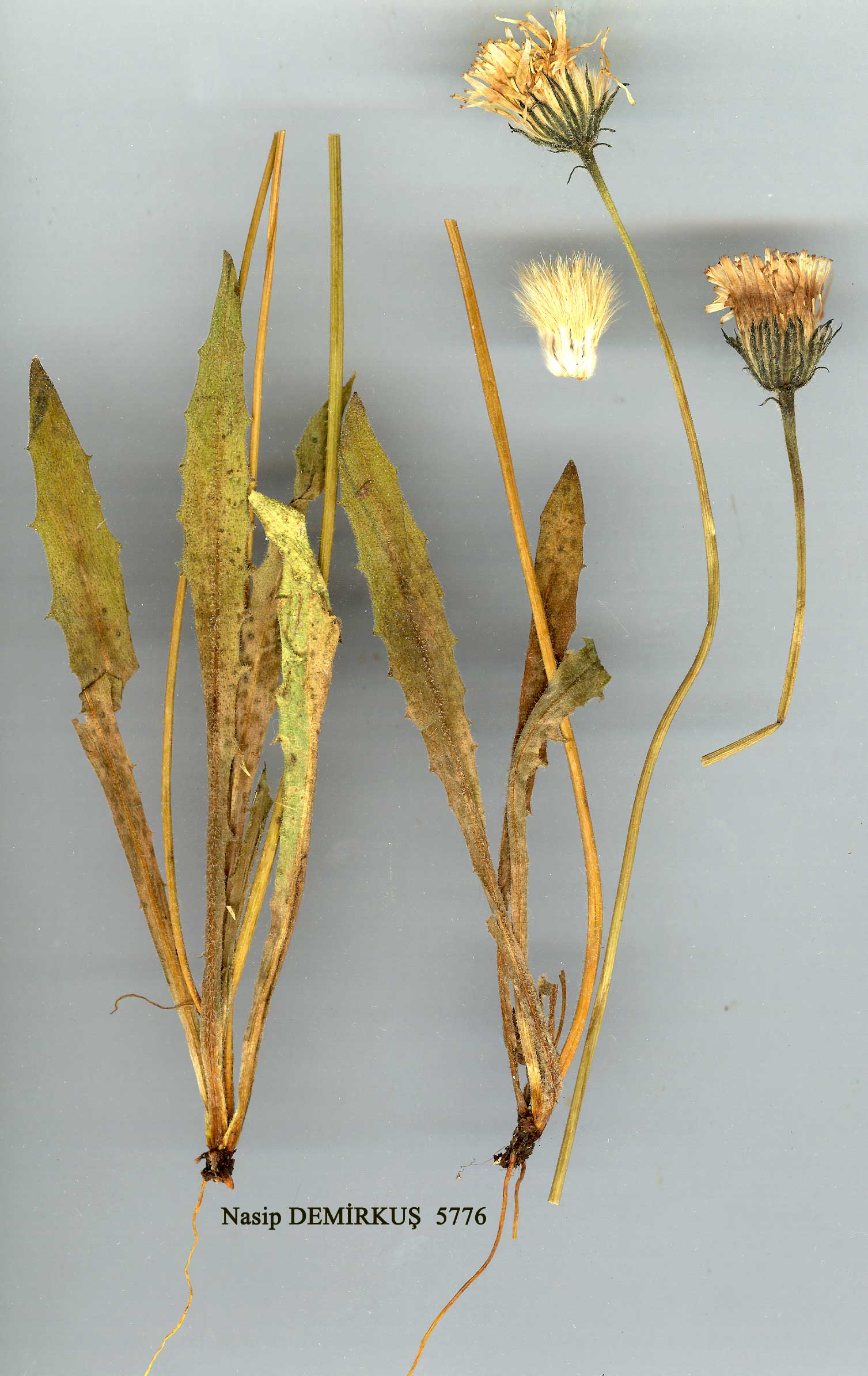 | L. hispidus L., Sp. Pl. 799 (1753). Ic: Fiori, Ic. Fl. Ital. f. 3841 (1904); Polunin, Fls. Europe t. 1524 (1969). Perennial, with horizontal cylindrical corky rhizome. Indumentum consisting in part of forked hairs. Stems 17-42 cm, unbranched, sparsely bracteate or naked. Leaves 5-16 x 1-3 cm, oblanceolate in outline, acute at apex and tapered at base, subentire to runcinate-dentate, hispid to glabrous. Involucre hemispherical, sub-2-seriate, 10-16 mm long; phyllaries with membranous margins, hispid or glabrous. Achenes truncate at apex, all pappose. Pappus yellowish. Fl. 7-9. Forests, fields, banks, 20-3300 m. 1. Leaves and phyllaries sparsely to densely hispid var. hispidus 1. Leaves without forked hairs and phyllaries without hispid hairs, glabrous var. glabratus var. hispidus. Syn: L. hastilis L. var. vulgaris W.Koch, Syn. Fl. Germ. 419 (1837); L. hastilis L. var. hispidum (L.) Boiss., Fl. Or. 3:730 (1875). Described from Europe (Hb. Cliff.!). Scattered in Anatolia, commonest in the N. & E. A2(A) Bursa: Mt. Olympus (Ulu Da.), Thirke (fide Boissier). A3 Bolu: Abant G., 1400 m, Sorger 69-4-29! A4 Zonguldak: Keltepe above Yenice, 1300 m, D. 38969! A5 Kastamonu: W. of Ilgaz pass, 2000 m, Darrah 106! A6 Ordu: 16 km W. of Ordu, 200 m, Furse 4152! A7 Giresun: 3 km S.E. of Kümbet, 1700 m, Sorger 69-27-17! A8 Trabzon: Sakarsu to Haldizen, 2440 m, Balls 1842! A9 Kars: 10 km from Sarikamiş to Karakurt, 2050 m, D. 46544! Bl Izmir: 7 km from Bornova to Manisa, 350-365 m, Buttler 12417! B4 Ankara: d. Kizilcahamam, Işik Da., Khan et al. 740! B6 Maraş: Berit Da., Hausskn. B9 Ağri: 54 km E. of Horasan, between Zidikan and Velibaba, c. 2500 m, Rech. 15010! B10 Ağri: Büyük Ağri Da., 2440 m, B.Post 1910:2149! C2 Muğla: Macri (Fethiye), ii 1842, Forbes 378! C9 Hakkari: Kara Da., 3200 m, D. 24471! |
