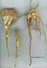 | T. coloratus C.A.Meyer, Verz. Pfl. Cauc. 61 (1831). Figure 25, p. 661. Glabrous biennial, 10-50 cm. Stems usually several, branched. Leaves narrowly linear. Peduncles swollen below capitula. Phyllaries 5-8, lanceolate, usually longer than flowers, 1.5-2.5 cm in flowering capitulum, 3-5(-7) cm in fruiting capitulum. Flowers lilac to purple or pink. Achenes pale brown, 16-25 mm, with 5 longitudinal rows of ± separate scales and 5 rows of shorter scales between, beak shorter than achene, clavate at apex. Pappus 14-20 mm, purplish, annulus very sparsely hairy. Fl. 5-8. Stony places, 350-2500 m. Type: [Caucasia] in collibus siccis petrosis montium Talüsch prope pagum Swant (1830 m), C.A.Meyer (494) (G!). N. & Inner Anatolia. A4 Kastamonu: Bostanli, 30 km S. of Kastamonu, 1300 m, Sorger 69-13-34! A5 Amasya: Amasya, Bornm. 1889:696! A6 Samsun: Meşeli Düz, 350 m, Tobey 806! A7 Gümüşane: nr Gümüşane, 1862, Bourgeau! A8 Erzurum: Kop Da. between Aşkale and Bayburt, 2300-2500 m, Rech. 37700! B4 Konya: Yavşan Memlehasi nr Tuz G., D. 18680! B5 Yozgat: 1 km E. of Yozgat, 1150 m, Sorger 70-15-5! B6 Sivas: nr Zara, 1300-1400 m, Bornm. 1893:3414! B7 Erzincan: Egin (Kemaliye), 20 v 1890, Sint. s.n.! B9 Van: Varak (Erek) Da., Maunsell! Iran, S. & E. Transcaucasia, Talysh. Ir.-Tur. element. |