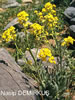 | A. elichrysifolium (DC.) Boiss., Fl. Or. 1: 240 (1867). Syn: Sterigma elichrysi-folium DC, Syst. 2: 581 (1821). Perennial herb with a short woody stock and numerous sterile rosettes. Stems erect, sometimes scapose, 4-40 cm. Leaves entire, usually canescent, oblanceolate to spathulate, tapering into a long petiole. Flowers very fragrant. Petals bright yellow, (6-)10-13 mm. Siliquae usually lanceolate, often constricted between the seeds, pubescent, 10-30 mm, borne on erect-spreading, or rarely deflexed pedicels. Stigma lobes diverging. A very polymorphic species, divisible in Turkey into 6 subspecies: 1. Petals 6-9 mm; siliquae villous with hair as long as the siliqua is broad subsp. villosum 1. Petals usually 10-13 mm; siliquae less densely pubescent 2. Whole plant densely white-pannose subsp. canescens 2. At most the young leaves white-pannose 3. Stems unbranched, usually scapose subsp. elichrysifolium 3. Stems branched above, usually leafy 4. Plants completely egiandular subsp. persicum 4. Plants with glands on the stems and pedicels 5. Plants canescent as well as glandular subsp. cilicicum 5. Plants principally glandular, with a few branched hairs, but not canescent subsp. glandulosum subsp. glandulosum Cullen & Coode in Notes R.B.G. Edinb. 26: 193 (1965). Fl. 7-8. Rocky places, 2500-3300 m. Type: Turkey B7 Erzincan: foot of Keşiş Dağ, above Cimin, 2500 m, Davis & Hedge D. 31693 (holo. E!). Upper Euphrates, Kurdistan. B7 Erzincan: Keşiş Da., above Cimin, 2600 m, D. 31757! C9 Hakkari: Cilotepe, 3300 m, D. 24062! Endemic; Ir.-Tur. element. |