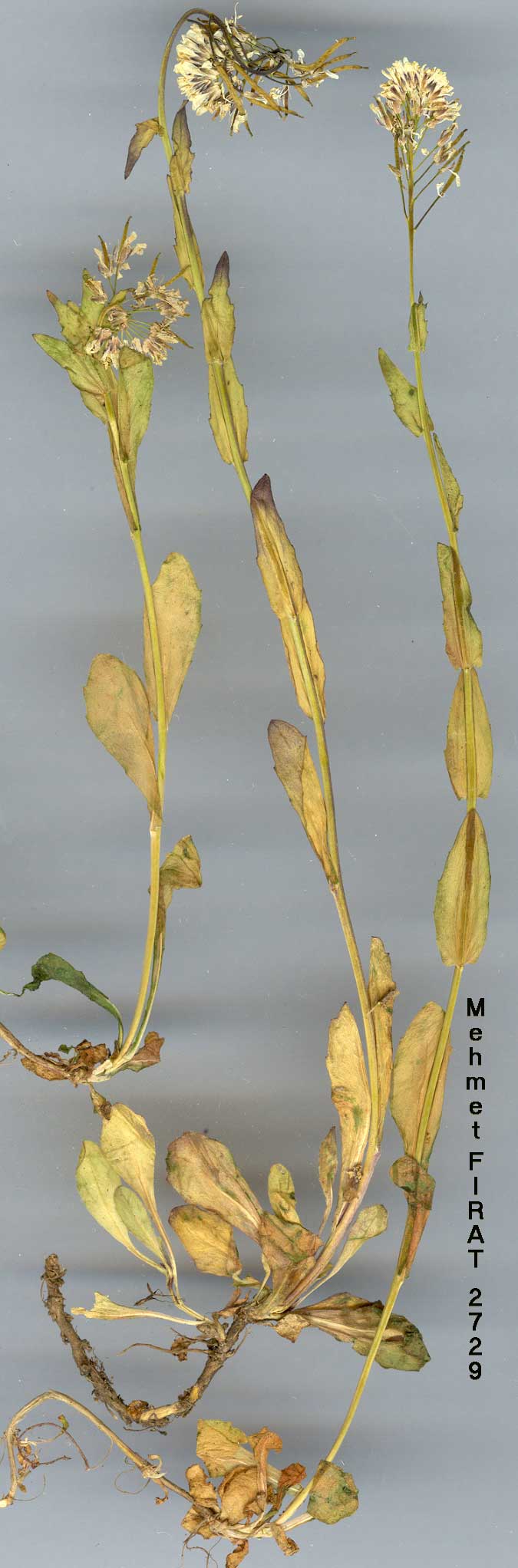 | A. sagittata (Bertol.) DC. in Lam. & DC, Fl. Fr., ed. 3, 5: 592 (1815). Syn: Turritis sagittata Bertoloni, Plantae Genuenses, ed. 1, 79 (1704). Biennial herb. Stems erect, up to 80 cm, pilose with simple hairs below. Stem leaves overlapping, numerous, cordate to sagittate, with spreading auricles. Petals 5-6 mm, white. Siliquae 25-50 x 0.8-1 mm. Fl. 4. Limestone rocks, near s.l.-1600 m, or more. Type: [Italy, Genoa] Genuae, in collibus cultis prope il Lagazzo, Bertoloni. Scattered. A2 Bursa: Bursa, Formanek. A3 Zonguldak: Kel Tepe above Yenice, 1300 m, D. 38952! A5 Amasya: Sana Da., 1500-1600 m, Bornm. 1889: 1525. Kastamonu: Tosya, Kaiseridere, Sint. 1892: 4421. C6 Hatay: Karlik Tepe above Soğuk Oluk, 1000 m, D. 27088! Maraş: Berit Da., Hausskn. C. & S. Europe, W. Syria, N. Iran, N.W. Africa. |