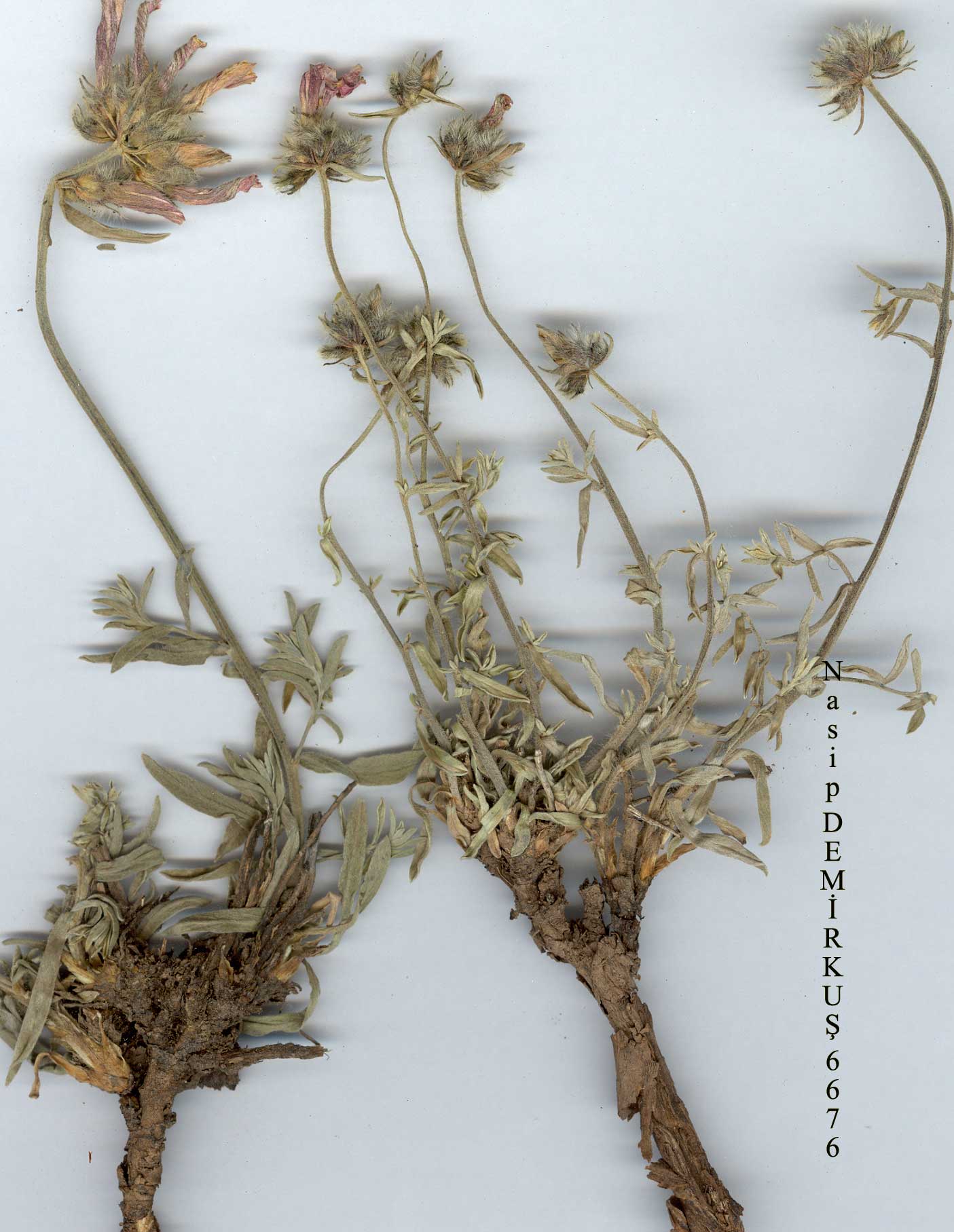 Woody-based prostrate or subprostrate perennial, densely branched from base. Stems with spreading and adpressed-sericeous hairs, 5-20 cm. Leaves linear to oblanceolate, to 3 cm x 5 mm, long-sericeous with some spreading hairs. Cymes 2-7-flowered, compact, usually terminal, sometimes axillary. Outer sepals ovate-elliptic, 8-10 mm, long-acuminate, hairs± preading. Corolla pink or white, c. 18 mm. Ovary hairy. FI. 5-7. Non-lime screes, shaly slopes, stony steppe, 915-2600 m Lectotype: [Turkey A8 Erzurum] in Armenia prope Tortoum, Calvert [1282] (G! iso. E!). E. Anatolia. A8 Gümüşane: nr Bayburt, 28 vi 1862, Bourgeatı! Erzurum: between Erzurum and lspir, 915-1220 m, vi 1853, Huet'. A8/9 Erzurum: Oltu, Sosnovsky 139! B6 Sivas: 30 km S.W. of Kangal (Gürün), 1500 m, Sorger 70-32-14(!). Malatya: Kangal to Hekimhan, 1300 m, Stn. & Hend. 5372! B7 Erzincan: Sipikör Da., 1435 m, Balls 1542! Elaziğ: c. 10 km S.W. of Elaziğ, 1100 m, 9 vi 1967, Eiseltl B8 Erzurum: Kop Da., Aşkale to Bayburt, 2200 m, Hub.-Mor. 11340. B9 Bitlis/Van: 10 km S.E. of Pelli, 2590 m, D. 22590! Van: Kerikas Da., 5 km S.W. of Arpat, 24 km from Gevaş, 2600 m, Frödin 1939:207! B10 Van: 6 km from Özalp to Saray, 2250 m, D. 44380! Cβ Hatay: Amanus, Aşaği Zarkun, 1000-1800 m, 30 vi 1932, Eig & M.Zoharyl Crimea, Caucasia. W. lran. ir.-Tur. element. Closely related to C. lanuginosus Desr. of S.W. Europe and N.W. Africa, and possibly deserving only subspecific status. C. lanuginosus differs in its filiform bracteoles and glabrous ovary. |