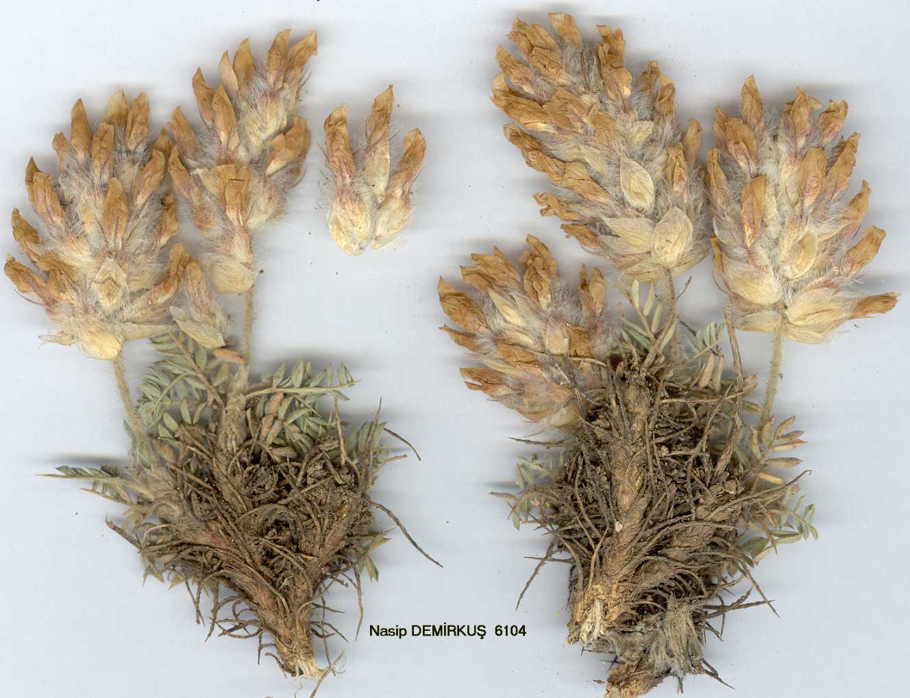 | A. persicus (DC.) Fisch. & Mey. in Ind. Sem. Hort. Petrop. 1:3 (1835) quoad basionym, non sensu Bunge et Boiss. Syn: A. lagopoides Lam. var.persicus DC., Prodr. 2:299 (1825): A. mesopotamicus Boiss.. Diagn. ser. 1(2):68 (1843); A. olivieri KIotzsch ex Bunge. Astrag. Geront. 2:115 (1869).Differs from A. lagurus in having shorter leaves (3-6 cm), bracts equal to or shorter than calyx, and flowers purple. It differs from A. hirticalyx in its hairy bracts and longer peduncles. Fl. 6-8. Steppe, roadsides, field margins, 2050-2550 m. Type: [W. Iran] inter Kermancha et Amadan, Olivier & Brugiuère (P). E. Anatolia. B9 Ağri: Ağri to Horasan, 2050 m, Lamond 2562! Van: d. Gür-pinar, Çuh Gediği, between Hoşap and Başkale, 2130 m, Hub.-Mor. 11444! C10Hakkari: pass from Bacirge to Yüksekova, 2550 m. Cheese & Watson 2950! N., N.W. & W. Iran, Soviet Armenia. Ir.-Tur. element. Related to A. hirticalyx. |