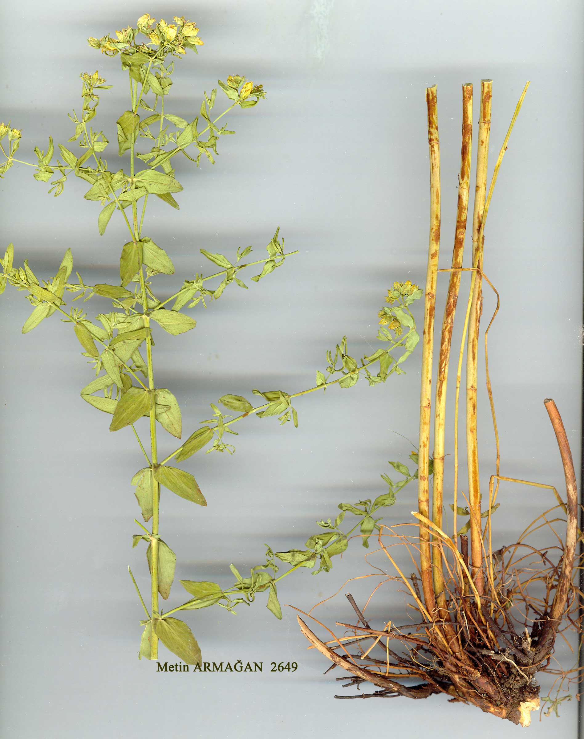 H. triqetrifolium Turra, Farsetia Nov. Gen. 12 (1765). Syn: H. crispiim L., Mant. 106 (1767). Ic: Sibth. & Sm., Fl. Gr. 8: t. 776 (1833). Stems 15-55 cm, erect or decumbent, 2-lined, with branches widely spreading, usually forming a pyramid. Leaves 3-20 mm, triangular-lanceolate or rarely narrowly ovate to linear-oblong, amplexicaul, undulate, sometimes with medium to small pellucid dots. Sepals oblong to ovate-oblong, rounded or apiculate, entire or denticulate, without black dots. Petals 5-7 mm, without or occasionally with one superficial black dot. Capsule 3-5 mm, ovoid, with longitudinal vittae and occasionally a few lateral vesicles. Fl. 5-9. Open dry stony and sandy ground and cultivated fields, s.I.-1250 m. Syntypes from Greece, Sicily & Calabria. A1(E) Çanakkale: Gelibolu, Kilia, Ingoldby 585! A1(A) Çanakkale: nr. Erenköy, vi 1856, Kirk! A2(E) Istanbul: Küçük Çekmece to Büyük Çekmece, 50-100 m, D. 39246! A2(A) Istanbul: Prinkipo (Büyükada), ix 1903, Azn.! A5 Amasya: nr. Sana, 350-500 m, Bornm. 1498! A6 Tokat: Tokat, Wiedemann 35! Bl Izmir: Burnabat nr. Izmir, Uvarov 28! B2 Manisa: Philadelphia (Alaşehir), Boiss.1 B4 Ankara: Ankara, 875 m, Frödin 199! B6 Maraş: d. Elbistan, Kapidere, D. 20419! B7 Elazığ: 60 km E of Elaziğ, D. 24813! B8 Siirt: Sassun nr. Goro, 1600 m, Hand.-Mazz. 2914; Bitlis: Bitlis gorge south of Kambos Da., 1250 m, McNeill 598! B9 Bitlis: Bitlis cevari, Bay top 4926! Cl Muğla: Datça to Marmaris, 10 m, Dudley, D. 35439! C2 Denizli: Taş Ocaği nr. Denizli, D. 13246! C3 Antalya: Akseki to Manavgat, 140 m, Hub.-Mor. 9150! C4 Içel: Mut, II viii 1963, Huber! C5 Içel: above Tarsus, 250 m, Krause 480. C6 Hatay: Reyhanlı, 90 m, Brown 274! C7 Urfa: N of Urfa, Hand.-Mazz. C8 Diyarbakir: c. 30 km from Diyarbakir, c. 750 m, McNeill 487! S. Europe, N.W. Africa, Çyrenaica, Cyprus, W. Syria, Syrian Desert, Sinai, N. Iraq, S. Iran. |