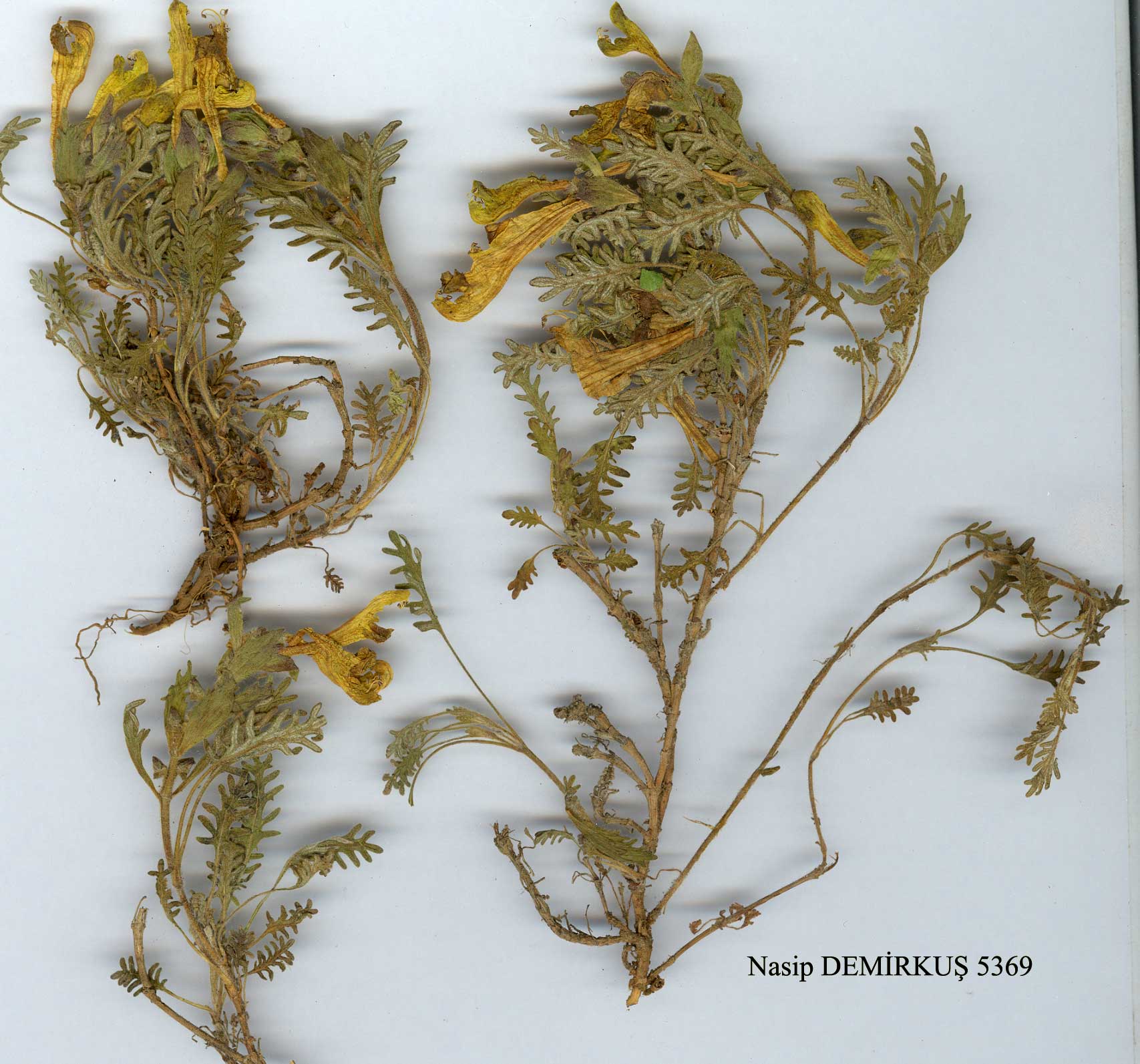 S. orientalis L., Sp. PI. 598 (1753). i0 ' ~'yJ^J A very variable suffrutescent perennial herb, usually repent at base. Stems 5-45 cm, obscurely tetragonal. Leaves distinctly petiolate, lamina ovate-elliptic to linear, 5-30 mm, usually obtuse, cuneate or attenuate (rarely truncate) at base, (with rare exceptions) 1.5-2 x as long as broad, weakly crenate to incised-pinnatifid or pectinate-pinnatifid, glabrous to densely canescent-tcmentose, often markedly discolorous. Inflorescence a terminal spike with tetragonal ranks of flowers (not secund), usually dense with ± imbricate bracts; bracts very variable in size and shape but often either pale greenish or deeply purple-tinged, sessile. Corolla 20-32 mm, usually yellow, sometimes reddish-spotted or with red upper or lower lip or entirely pink, bright red, brick-red or purplish, ± pubescent. Nutlets oblong, tomentellous. A polymorphic complex extending from Spain and N.W. Africa to Sinkiang. The following 16 subspecies have been recognised mainly by a combination of characters of habit, height and mode of branching of stem, shape and degree of incision of leaves, leaf indumentum, size and shape of bracts and corolla colour. Where appropriate, the distribution of the subspecies within Turkey has been cited in a parenthesis in the key. Short descriptions are given as a further aid to correct identification. Some material cannot be accommodated within the subspecies as presently delimited, and examples of such specimens have been cited which fall outside the range of measurements etc. given in the descriptions. The existence of such morphological intermediates prompted me to adopt a broad species concept in this group. 1. Cauline leaves at least 4 x as long as broad (Inner Anatolia) m. subsp. santolinoides 1. Cauline leaves less than 4 x as long as broad 2. Leaves pinnatifid, divided at least to midway to midrib 3. Lower bracts pinnatifid to dentate; stems to 25 cm tall (S.E. Anatolia) j. subsp. pichleri 3. Lower bracts entire, rarely lowermost pair with 1-2 teeth; stems not exceeding 20 cm tall 4. Leaves pectinately lobed with narrow linear segments, divided almost to midrib, strongly discolorous, greenish above, whitish beneath (N.E. Anatolia) c. subsp. sosnowskyi 4. Leaves divided to distinctly short of midrib, lobes ± revolute, con-colorous or weakly discolorous, greenish above and beneath (widespread) h. subsp. pinnatifida 2. Leaves serrate, crenate or crenately lobed, divided to less than half-way to midrib 5. Lamina of median cauline leaves not more than 8 mm (rarely more); plant prostrate, mat-forming 6. Margins of leaves subacutely serrate; calyx densely sericeous (S.E. Anatolia) k. subsp. porphyrostegia 6. Margins of leaves obtusely lobed; calyx not sericeous 7. Plant greyish-incanous; margins of leaves often strongly recurved; corolla dusky crimson with yellow lower lip, rarely yellow (medium altitudes) g. subsp. pectinata 7. Plant ± greenish, not incanous; margins of leaves not strongly recurved; corolla yellow, lower lip sometimes reddish-tinged (widespread at high altitudes) i. subsp. alpina 5. Lamina of cauline leaves more than 8 mm (except uppermost); plant prostrate to erect, mat-forming or not 8. Leaves markedly discolorous, silvery-tomentose beneath (N.E. Anatolia) b. subsp. orientalis 8. Leaves concolorous or somewhat discolorous, not silvery beneath 9. Stem 20-45 cm, erect; bracts lanceolate to ovate, ± falcately curved upwards 10. Inflorescence lax; lamina lanceolate to oblong, 3-4 x as long as broad (E. Anatolia) n. subsp. sintenisii 10. Inflorescence dense; leaves 1.5-2.5 x as long as broad 11. Stem 20-35 cm, usually branched at base; leaves sparsely tomen-tellous above and beneath, margins shallowly dentate; bracts concave, not keeled (S.E. Anatolia) p. subsp. bornmuelleri 11. Stem 30-42 cm, usually branched in upper third; leaves densely tomentose to canescent beneath, margins crenate; bracts keeled (E. Anatolia: Mesopotamia) o. subsp. haussknechtii 9. Stem to 20 cm, prostrate or ascending; bracts broadly ovate to orbicular, not falcately curved upwards 12. Leaves dimorphic, lowermost linear-oblong with revolute crenat-ions, densely greyish-hairy, cauline triangular-ovate (S.W. Anatolia) 1. subsp. carica 12. Lowermost cauline leaves similar to the rest, not densely greyish-hairy 13. Leaves glabrous (mainly S.E. Anatolia) a. subsp. virens 13. Leaves ± puberulous to tomentellous at least beneath 14. Lower surface of leaves evenly hairy on and between veins 15. Leaves ± concolorous (mainly S.E. Anatolia) a. subsp. virens 15. Leaves discolorous (E. Anatolia, mainly Anti-Taurus) d. subsp. bicolor 14. Lower surface of leaves unevenly whitish-hairy, with distinctly fewer hairs on veins 16. Stems prostrate, 5-15 cm; petiole to 20 mm (Inner Anatolia) e. subsp. macrostegia 16. Stems ascending to erect, 10-20 cm; petiole 3-5 mm (E. Anatolia: Mesopotamia) f. subsp. cretacea subsp. sosnowskyi (Takht.) Fed. in Spis. Rast. Gerb. Fl. SSSR 27:74 (1967). Syn: S. sosnowskyi Takht. in Zam. Sist. Geogr. Rast. (Tiflis) 9:24 (1940). Figure 3. Map 11. Similar to subsp. orientalis in habit, leaf indumentum and size and shape of bracts, differing mainly by its longer-petiolate leaves (to 16 mm), lamina oblong to elliptic in outline, deeply pinnatisect to 0.6-0.75 x its width, lobes linear and ± pectinate. Fl. 6-7. Rocky banks, stony slopes and screes, 1950-2290 m. Type: [USSR, Armenia] districtus Amassicus prope pagum Kaikuli, 12 viii 1934, Sosnowsky (holo. ERE). Easternmost Anatolia. A9 Kars: Digor, Pazarcik, 2290 m, Yürül (EGE 12654)! B9 Ağri: Ağri to Doğubayazit, 1750 m, Walton 29! B10 Ağri: 4 km N. of Doğubayazit, 1600 m, Ehrend. et al. 787-105-1! S. & E. Transcaucasia. Ir.-Tur. element. Related to subsp. orientalis. Two gatherings are intermediate between the two subspecies: A9 Çoruh: Ardahan to Ardanuç, Ziyaret Da., D. 30282! B10 Kars: 34 km from Doğubayazit to Iğdir, N. side of Pamuk Da. pass, 1750 m, D. 43515! |