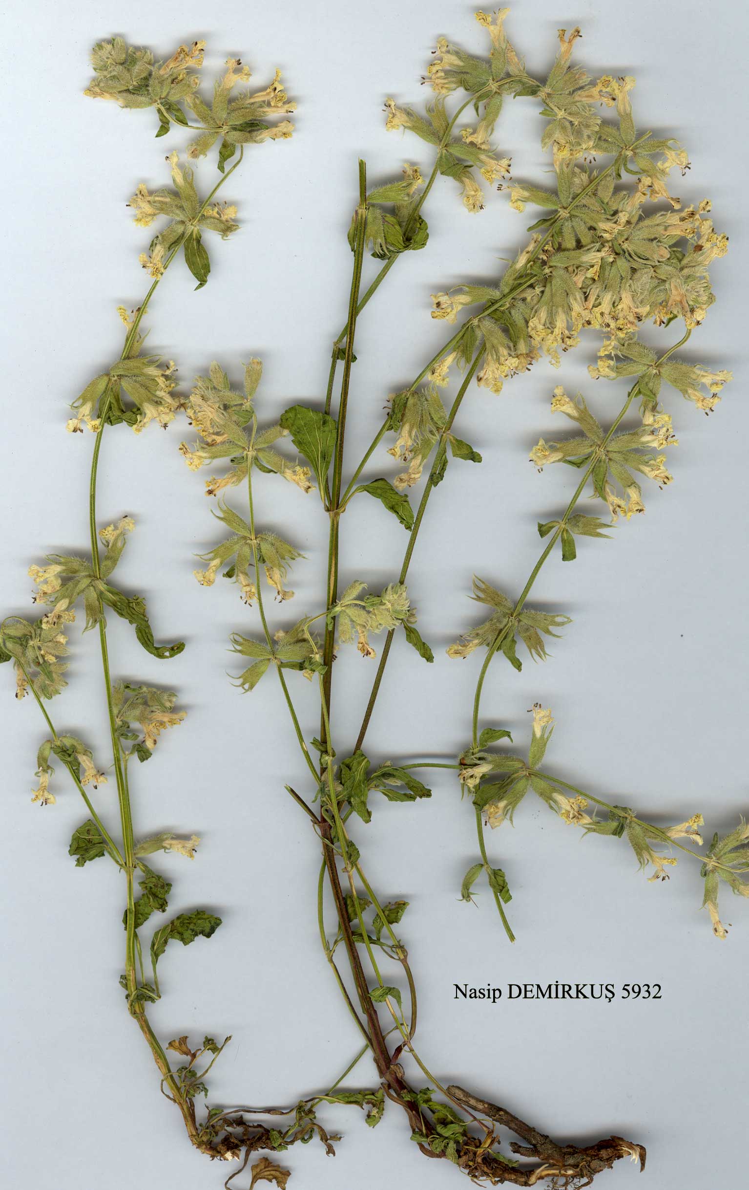 S. annua (L.) L., Sp. PL ed. 2, 813 (1763). Bhattacharjee in Notes R.B.G. Edinb. 33:288-290 (1974). Syn: Betonica annua L., Sp. P1. 573 (1753)! Stachys betonica Crantz, Stirp. Austr. ed. 2(4):264(1769);S. pubescens Ten., Fl. Nap. 1, Prodr. 34 (1811), Ic. vol. 5:14, t. 239 (1835); S. balbissii Link, Enum. Hort. Berol. 2:110 (1821); S. maritima sensu d'Urv., Enum. P1. Ins. Pont.-Eux. 68 (1822) non Gouan (1764); 5. decumbens Willd. ex Bentham in Linnaea 11:336 (1837) non Pers. (1806); S. micrantha C. Koch in Linnaea 21:690 (1848);S. adenocalyx C. Koch, op. cit. 691 (1848);S. neglecta Klokov apud Koccko in Fl. BSSR 4:289 (1955). Suffrutescent perennial, biennial or annual with or without basal sterile rosettes. Flowering stems usually procumbent, simple or branched, c. 8-50 cm. Stem densely or sparsely retrorse-pubescent, sometimes glabrous at base or throughout, rarely with patent glandular hairs throughout. Basal leaves ovate-oblong to ovate-lanceolate, 1-4.5 x 0.5-2.5 cm, crenate, cordate to attenuate at base, petiole 1-5 cm. Cauline leaves ovate-rhomboid, broadly lanceolate to oblanceolate, 1-3 x 0.5-1.5 cm, crenate-dentate, cuneate to attenuate at base, shortly petioled to subsessile, c. 1 cm. Floral leaves elliptic to linear-lanceolate, 1-2 x 0.5-0.8 cm, weakly crenate or entire, subsessile to sessile, as long as or slightly longer than verticillasters above. Leaf indumentum sparsely adpressed-pubescent, sometimes glabrescent with sessile glands. Verticillasters usually remote, 1.5-4 cm distant, few ± approximate above, 4-8-flowered. Bracteoles few, setaceous, 1-2 mm. Pedicels 1-1.5 mm. Calyx sub-bilabiate, sub-campanulate to campanulate, 10-11 mm, ± gibbous at base in fruit; teeth triangular-subulate to lanceolate with 0.5-2 mm hairy spinulescent tip, 1/2-3/4 x calyx tube; calyx lips curved, tube densely villous to adpressed pubescent, sometimes glabrescent, with or without glandular hairs. Corolla creamy-yellow with red markings, 13-19 mm, tube exserted, saccate at base. Nutlets obovoid, 2 x 1.3 mm. 1. Plant perennial or sometimes biennial 2. Calyx tube patently pilose in lower part with c. 2 mm hairs subsp. annua var. lycaonica 2. Calyx tube adpressed pubescent throughout and with few patent hairs subsp. annua var. annua 1. Plant annual 3. Stem erect, patently glandular haired throughout subsp. cilicica 3. Stem procumbent, glabrescent below, adpressed-pubescent above with glandular hairs or sessile glands or glabrescent throughout 4. Stem glabrescent with sessile glands; calyx teeth lanceolate-subulate with 0.5-1 mm shortly hairy spinescent tip subsp. annua var. annua 4. Stem glabrescent below, adpressed-pubescent above, with few glandular hairs; calyx teeth triangular-subulate with 1-2 mm densely setulose tip subsp. ammophila subsp. annua. var. lycaonica Bhattacharjee in Notes R.B.G. Edinb. 33:289 (1974). Fl. 5-9. Edge of cultivated and fallow fields, streamsides, denuded forest, limestone gorges and slopes, gravelly banks, sea cliffs, 50-2050 m. Type: Turkey B2 Kütahya: Gediz to Kütahya, 18 km S. of Kütahya, 1100 m, limestone gorges and slopes, 7 vii 1962, P.H. Davis & Coode, D. 36929 (holo. E!). Mainly C. Anatolia. A.2(A) Bilecik: 14 km N. of Bilecik, 600 m, Sorger 62-17-11. A3 Ankara: Ankara to Beypazari, 700 m, Akman 962! A4 Ankara: Ankara, Bornm. 1893:3090! A5 Amasya: 10 km from Merzifon to Çorum, A. Baytop (ISTE 9115)! B3 Eskişehir: 3 km W. of Sivrihisar, 1100 m, Sorger 64-32-33! B5 Nevşehir: Göreme, 1130 m, D. 42224! B6 Sivas: Divriği, T. Baytop (ISTE 13004)! B7 Erzincan: nr Aşkole, 1950 m, M. Zohary 671622(!). C2 Denizli: Kizilcabölük to Denizli, 1000 m, Dudley (D. 35339b)! C3 Konya: 61 km S. of Konya, 1350 m, Sorger 70-42-11! C4 Konya: Beyşehir to Konya, 4 km from Beyşehir, 1100 m, Dudley (D. 35841)! C5 Adana: Hacin (Saimbeyli), Maniss. 33b! C6 Adana: Nur Da., mt. Dschappar Dede, Kotschy 1859:6(0. W. Iran. Ir.-Tur. element. |