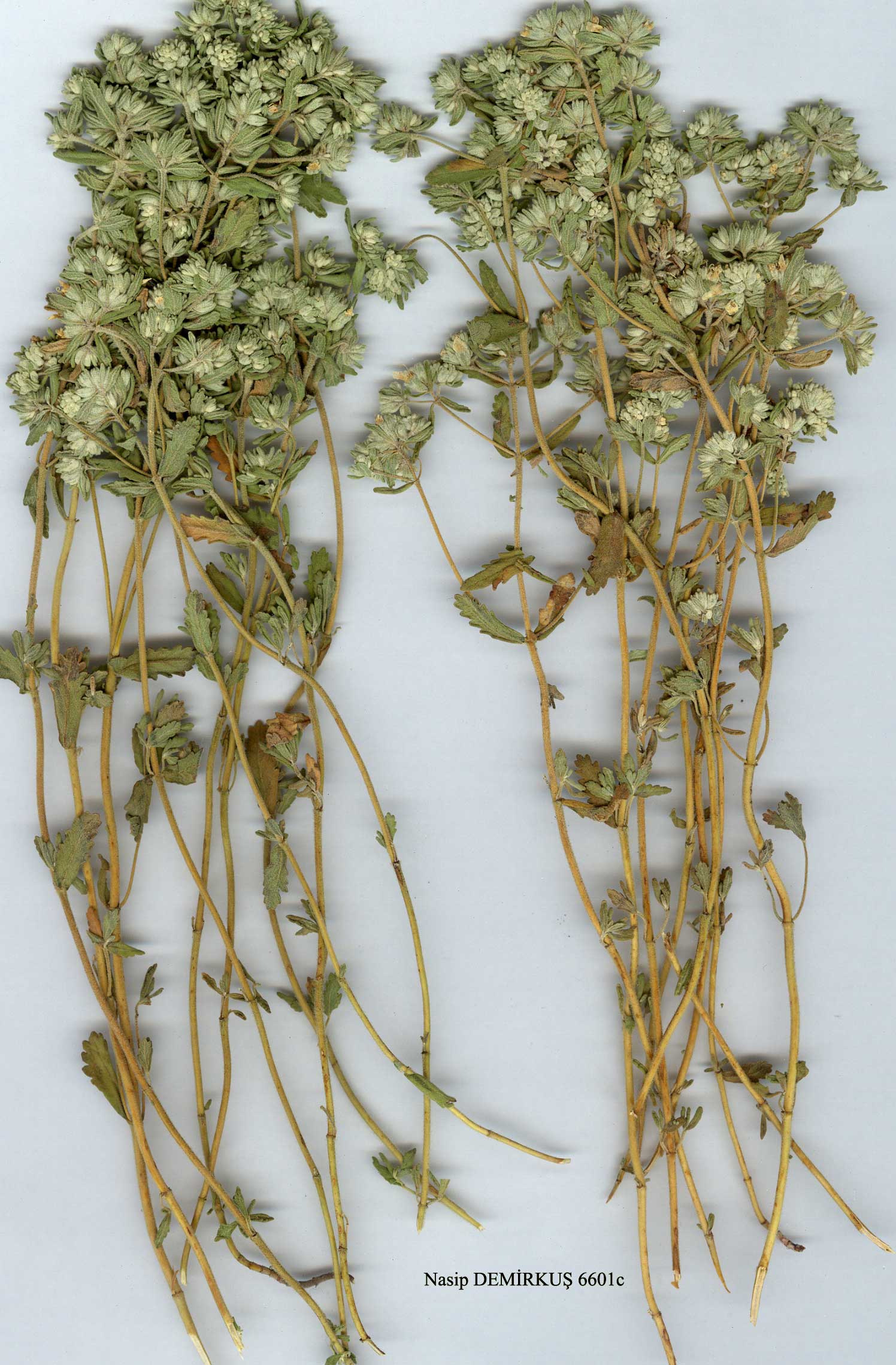 T. polium L., Sp. P1. 566 (1753). Incl var. vulgare Bentham, Lab. Gen. Sp. 685 (1835); var. hirsutum Bentham, op. cit. 685 (1835); var. angust-ifolium Bentham, op. cit. 686 (1835); var. gnaphalodes Bentham, op. cit. 686 (1835); var. bithynicum Griseb., Spic. 2:150 (1844); var. vulgare Boiss., Fl. Or. 4:821 (1879); subsp. capitatum (L.) Arcangeli, Comp. Fl. Ital. 559 (1882); var. intermedium Čelak. in Bot. Centr. 14:152 (1883); var. lanugino-sum Čelak., loc. cit. (1883); var. spicatum Post, Fl. Syria ed. 1:665 (1896); var. angustifolhim (Miller) Beg. & Diratz., Contr. Fl. Armen. 96 (1912); var. latifolium (Miller) Beg. & Diratz., loc. cit. (1912). Ic: Boul., Fl, Lib. Syr. t. 356(1930),as vars. angustifolium & vulgare; Fl. RPR 8: t. 13 f. 1 (1961). Suffruticose perennial. Stems 10-40 cm, prostrate to erect, with white, grey (or sometimes golden) lanuginose-tomentose or crisped indumentum, intemodes shorter or longer than leaves. Leaves oblong to narrowly obovate or linear, obtuse, crenate to the base or middle, flat or revolute-margined, usually tomentose. Flowers very shortly pedicellate, borne in heads (capit-ula). Bracts linear-spathulate, crenate or entire, shorter to slightly longer than calyces. Calyx 3-5 mm, tubular-obconical, usually densely lanuginose or ad-pressed-canescent, divided to 1/4-1/3 into subequal, obtuse teeth. Corolla whitish, proximal lobes occasionally glabrous. Nutlets 2 mm. Fl. 6-9. Dry places, Quercus scrub, rocky slopes, steppe, dunes, field margins etc., s.l-2050 m. Described from Italy, Spain, Portugal & S. France (BM-Hb. Cliff.; Hb. Linn. 722/35-41). Widespread. A 1(E) Istanbul: Çatalca, Terkos, Yalt. (ISTO 18139)! Al (A) Istanbul: 20 km E. of Istanbul, Danish Exped. 1! A2(A) Kocaeli: Gebze to Izmit, 50 m, D. 36247! A3 Eskişehir: Laçin, 400 m, Ekim 3112! A4 Ankara: Etlik, Yalt. (ISTO 17537)! A5 Amasya : nr Amasya, T. Baytop (ISTE 4668)! A6 Samsun: Ladik, Kara Da., 30 km from Ünye to Samsun, s.l., Karaman oğlu 800! A7 Trabzon: Beştaş, Dent 54! A8 Çoruh: Çoruh gorge, 450 m, D. 30050! A9 Kars: Kağizman, 1300 m, D. 46837! Bl Manisa : Kırkağaç to Soma, Peşmen 199! B2 Kütahya: Tavşanli, Regel (EGE 867)! B3 Kütahya: Türkmen Da., 1400 m, Ekim 2012! B4 Ankara: Kepekli boğazi, 850 m, Ekim 422! B5 Kayseri: Bünyan, Tuzhisar, 1350 m, Yamantaş (ISTO 18252)! B6 Malatya: Gürün, 40 km from Malatya, McNeill 467! B7 Elaziğ: Hazar G., 1500 m, D. 22092! B8 Erzurum: 20 km from Aşkale to Trabzon, 1900 m, Kukkonen 8054! B9 Bitlis: Tatvan, 2050 m, Tong 67! B10 Ağri: d. Doğubay-azit, Diyadin, 1200 m, Hewitt 166! Cl Aydin: Kuşadası, Selçuk, Peşmen et al. (EGE 7325)! C2 Muğla: 10 km from Muğla to Marmaris, 30 m, D. 35388! C3 Konya: nr Seydişehir, Bordaz 23! C4 Konya: Karapınar, 1000 m, Ekim 3243! C5 Içel: Gülek Boğazı, 1400 m, Siehe 1896: 641! C6 Gaziantep: Dülükbaba, 1200 m, Ekim 3722! C7 Urfa: Akçakale, 400 m, D. 28112! C8 Mardin: Mardin, Sint. 1888:1922! C9 Hakkari: Cilo Da., 1900 m, D. 23928! C10 Hakkari: nr junction of Van-Hakkari/Yüksekova roads, 1700 m, D. 44713! Is: Imroz, Forsskål; Lesvos, Cand.;Khios, Rech. obs.; Samos, Fors.-Maj. 711; Kalimnos, Rech. 7880;Rodhos, Rech. 7485. An exceptionally variable polymorphic species, especially in Turkey. Although most of the Turkish material can be assigned to about 10 infra-specific groups with their own centres of distribution, morphological and geographical overlap is common. Most of the material either has laxly ± tomentose calyx indumentum, or crisped-adpressed-tomentose calyx indumentum, but some of the variants transgress this division. Formal nomenclature and the keying out of the variants present problems that cannot be solved here. The synonymy cited above includes only the names that have been applied (often wrongly) to Turkish material of T. polium. Sect. Isotriodon Boiss. Dwarf, suffrutescent, fragile, saxatile herbs. Leaves dentate or entire. Stems terete. Racemes simple, secund. Calyx gibbous at base, bilabiate, upper 3 teeth shortly ovate, lower 2 teeth shortly ovate, lower 2 teeth narrower and acute. Nutlets c. 1 mm. - An isolated, E. Mediterranean section whose species are all rare. Until more Turkish material is available, it is difficult to decide whether specific or subspecific status should be given to some of the Turkish taxa. See also Davis in Kew Bull. 1951:113-115(1951). |