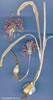 A. hirtifolium Boiss., Fl. Or. 5:281 (1882). Syn: A. atropurpureum Waldst. & Kit. var. hirtulum Regel, All. Monogr. 248 (İ875). Ic: Rech. fil., Fl. franka 76: t. 9 f. 120 (1971); Rix & Phillips, Bulb Book 140(b) (1981), as A. hirtifolium 'Stapf. Figure 9. Map 35. Bulb globose, 2.5-4 cm diam.; outer tunics split. Stem 80-120 cm, slightly ribbed. Leaves 4-5, linear-lorate, 1 l-25(-30) mm broad, lower part channelled, with white flexuous or retroflexed hairs, rarely glabrous. Spathe 2-valved, shorter than umbel. Umbel spherical, 6-10 cm diam., many-flowered. Pedicels 2-5 cm. Perianth stellate; segments purple, linear, 7-9 mm, with margins parallel for 2/3 then attenuate, obtuse, limp, rolled back. Filaments rather abruptly long-sabulate above broadened connate base, somewhat shorter than perianth. Oyary verruculose, stipitate. Capsule globose, 4 mm, depressed. Fl 6. Meadows, rocky igneous slopes, 1580-2600 m. Type: [tew] in Persia prope Ispahan (Isfahan), Aucher 5389 (holo. G, iso. K). S.E. Anatolia. B9 Van: Van castle, 1580 m, Koyuncu (AEF 6572). C10 Hakkari: Sat Da. between Varegöz and Sat G., 2400-2600 m, D. 45629! N. Iraq, W., C. & S. Iran. Ir.-Tur. element. The specimen from C10 Hakkari is incomplete, lacking bulb and leaves. The species was referred by Wendeibo in Rech. fil., FL Iranica 76:85 (1971) to Sect. Megaloprason Wendeibo of Subgen. Melanocrommyum (Webb & Berth.) Wendelbo. Sect. Kaloprasum C. Koch. Bulb subgtobose. Stem stout at maturity, tapering towards base. Leaves basal, with no above-ground sheaths. Umbel ± lax. Pedicels often markedly unequal Spathe persistent. Perianth stellate to broadly campanulate segments rigid and straight after anthesis. Filaments simple. Ovary with 6-10 ovules per locate. |