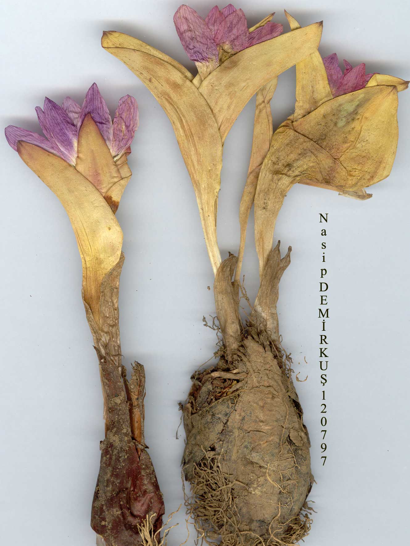 M. kurdica Bomm. in BulL Herb. Boiss. 7:79 (1899). Syn: Colchicum kurdicum (Bomm.) Stef., Monogr. Colchicum 42 (1926)! Corm oblong-ovoid, 2-4 x 1.5-2 cm; outer tunics mid-brown, membranous with a short neck 1-3 cm; innermost tunic pale brown. Leaves 3, lanceolate to narrowly lanceolate, 4-10(-12) x 1.8-3 cm at anthesis, to 17 x 3 cm at maturity, acute, greyish-green, glabrous. Flowers l(-2), pale to deep purple. Limb of perianth segments oblanceolate to narrowly oblanceolate, 30-35 x (5-)10 mm, acute, base auriculate. Filaments to 8(-9) mm; anthers yellow, 3-4 x 1 mm. Capsule ellipsoid, 20-30 mm. Fl. 5-7, Alpine steppe by melting snow, 1800-3000 m. Type: [Iraq] Riwandous, in alpe Helgurd, prope nives deliquescentes, 3100 m, 26 vi 1893, Bornmüller 1840 (holo. JE? iso. K!). SJE. Anatolia. B9 Van: û. Şatak, Kavuşşahap Da., 3000 m, D. 23137İ C9 Hakkari: Hakkari to Uludere, Süvari Halil pass, 2100 m, Güner 1671! CIO Hakkari: Sat Da. above Yüksekova, 2700 m, Duncan & Tait 22 (fr.!) Şemdinli, Kepenek köyü, 1800 m, T. Baytop (İSTE 26061)! N. Iraq. İr .-T ur. element. |