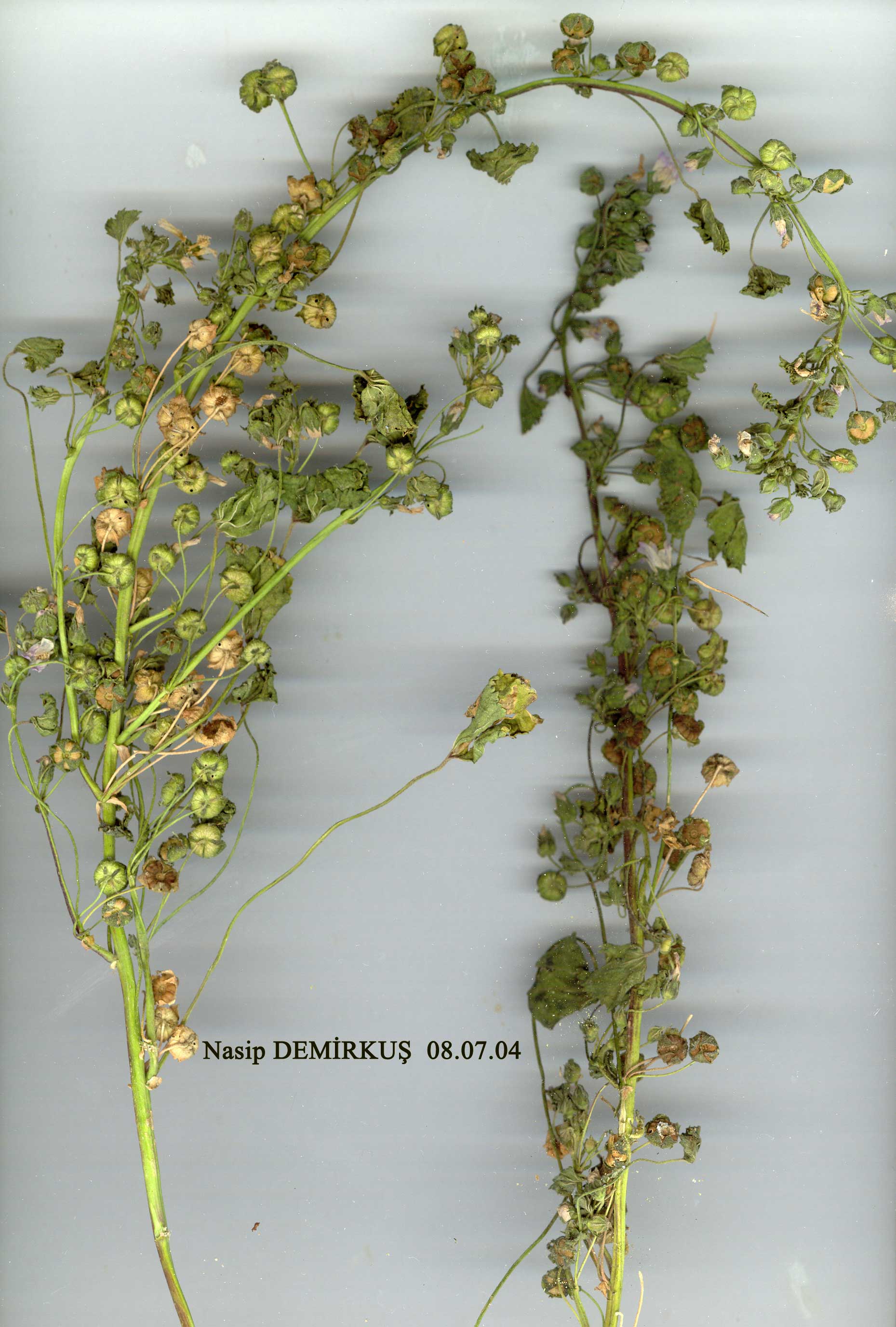 M. nicaeensis All., Fl. Pedem. 40 (1785). Syn: M. montana auct. Ic: Reichb., Ic. Fl. Germ. 5: t. 168 (1840); Bonnier, Fl. Comp. Fr., Suisse et Belge 2: t. 95 (1912). Annual. Stems ascending or erect, sparsely setose-pilose. Leaves ± orbicular, often shallowly 3-5-lobed, crenate. Flowers borne in fascicles in the leaf axils. Epicalyx segments oblong. Sepals broadly triangular, c. 2 mm. Petals lilac-pink, hairy at the base, 6-8 mm. Mericarps glabrous or hairy, reticulate, with adjacent margins smooth. Fl. 4-6. Fields nr. s.l. Described from Nice [France]. A1(E) Çanakkale: Suvla, Kett 146. A2(E) Istanbul: Zekerieköy, 5 vi 1899, Azn.! A2(A) Istanbul: Adampol, 22 v 1899, Azn ! CI Muğla: d. Marmaris, Cnidus, s.l, D. 41224! C2 Muğla: d. Marmaris, Söğüt. s.l.-50 m, D. 41176! C3 Antalya: Aksu, D. 25681! C4 Içel: Anamur, 5 m, D. 25955! C5 Içel: Kuyu-luk, 10 km W of Mersin, 2 m, D. 26562! Is: Khios, Platt 464! Samos, Rech. 3993! Mediterranean area, S. Russia, Crimea, N., C. & S. Iran, Transcaucasia, Syrian Desert, Arabia. |
