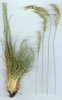 F. oreophila Markgr.-Dannenb. in Willdenowia 11:208 (1981). Syn: F. ovina L. subsp. sulcata Hackel var. hypsophila St.-Yves in Candollea 5:111 (1932) excl. syn. F. krylowiana Reverd., non F. hypsophila Phil. (1891); F. valesiaca Schleicher ex Gaudin subsp. hypsophila (St.-Yves) Tzvelev in Bot. Zhurn. 56:1255 (1971). Figure 16. Map 81. into rather stout fibres, lowermost squamiform and bladeless;ligule 2-4 mm, acute, lacerate. Leaf blades 3-4 mm broad, flat (but convolute when dry), rigid, hard, more than 1/2 x stem, narrowed in apical 1/3, with obtuse apex, scabrid on margin and the very prominent, truncate ribs; ribs with elongate bulliform cells between them; sclerenchyma strands stout, reaching veins from beneath but not from above. Panicle large, 20-30 cm, erect, lax, patent at anthesis; branches stout, scabrid, lowest one 6 cm (excl. spikelet-bearing por-tion). Spikelets whitish-glaucous, ovate-oblong, 10-11 mm, with 4-7 florets; rachilla segments setulose-ciliate. Glumes unequal, scarious, with scabrid keel; lower lanceolate, 1-veined, upper ovate-acuminate, 6.5-7 x 2.5-3 mm, 3-veined, reaching to 3/4 way up second lemma. Lemma ovate-acuminate, 7-8 x 3-3.5 mm, obtuse or rnucronate, scabrid, with 5 prominent veins, scarious-margined and broadly scarious in upper 1 /3. Palea with scabrid surface and scabrid-ciliate keels. Anthers 4-4.5 mm. Ovary hispid. 2n = 42. Fl. 6-7. Rocky screes, 1500-3500 m. Type: [Iran] in locis schistosis montis Elbrus prope Derbent, vi 1846, Kotschy 245 (sub F. spectabilis Jan) (holo. HEID, iso. G!). E. Anatolia. A8 Erzurum: Pasinler to Horasan, 1650 m, D. 29388! B7 Erzincan: Keşiş Da. above Cimin, 1900-2100 m, D. 31768! B8 Erzurum: Palan-döken Da., N.W. side of Büyük Ejder Da., 2300 m, Holtz 00.817 et al.(!). B9 Van: d. Başkale, Ispiriz Da., 3500 m, D. 23755! Ağri: W. side of Tahir pass (Horasan to Eleşkirt, 2350 m, D. 47305(0. Iran, Afghanistan. Ir.-Tur. element. Related to the Mediterranean species F. spectabilis Jan. St.-Yves' citation of 'Lazistan' for this species (Candollea 3:446, 1928) is wrong, referring to Luristan in Afghanistan. Sect. Bovinae (E.M. Fries ex Anderss.) Hackel (Syn: Schedonorus P. Beauv., pro gen.; Festuca L. subgen. Schedonorus (P. Beauv.) Peterm.; F. *Bovinae E.M. Fries ex Anderss.). Large plants. Ligule short, often only a low fringe. Leaf blades broad, flat, with falcate clasping auricles at base. Lemma broadly lanceolate, with rather prominent veins, awnless or nearly so. Caryopsis oblong or oblong-ovoid, broadly concave ventrally, adherent to palea; hilum 3/5-3/4 x caryopsis. |