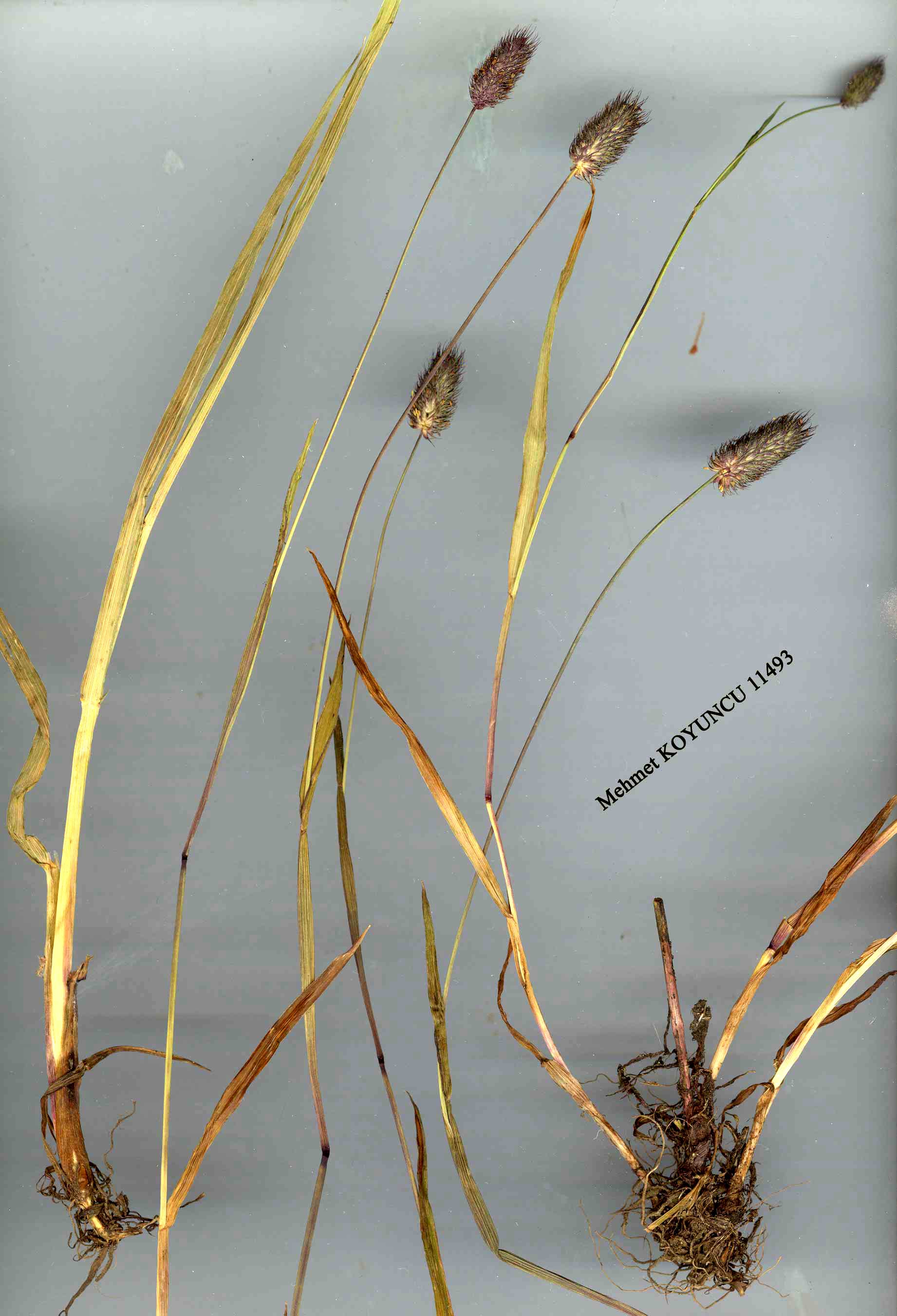 P. alpinum L., Sp.Pl. 59(1753). Syn: P. commutatum Gaudin, Alpina3:4 (1808);P. alpinum L.var. commutatum (Gaudin)Boiss.,Fl.Or.5:484(1884)! Ic: Fl. Iraq 9: t. 1ll (1968); Hubbard, Grasses ed. 2:324 (1968). Map 76. Laxly caespitose perennial, shortly rhizomatous. Stems 10-55(-60) cm, erect to geniculately ascending, smooth, glabrous, 2-3-noded. Leaf sheaths glabrous, uppermost sometimes inflated; ligule to 2 mm, truncate; blades 2.5-15.5 cm x 2.5-6 mm, linear, acuminate, glabrous but with scabrid margins. Panicle 1-4 x 0.5-1.2 cm, ovoid-oblong to shortly cylindrical, usually purplish. Spikelets 3-7 mm (incl. aristate points), oblong, truncate. Glumes 2.5-4 mm (excl, aristate points), ciliate on keels, slightly hispid on margins, abruptly term-inating in an aristate point (1.5-)2-3.5 mm. Lemma ovate, obtuse, c. 2/3 x glumes, hyaline, minutely hairy on veins, mid-vein sometimes minutely exser-ted. Palea slightly shorter than lemma. Anthers 1.2-1.8 mm. Caryopsis c. 1.5-1.6 mm. Fl. 6-8. Wet alpine and subalpine meadows, open slopes, by streams, Picea-Fagus forest, 1525-3175 m. Described from the Alps (Hb. Linn. 81/4!). Mainly N. & E. Anatolia. A2(A) Bursa: Ulu Da., 1842, Boiss.! A3 Bolu: Ala Da., Kartal Kaya, 1700 m, Alpay 391! A6 Sivas: Yeniköy to Çat Pinari, 1800-1900 m, D. 68946(!). A7 Giresun: Balaban Da., above Tamdere, Avşar Y., 2400 m, D. 20566! A8 Rize: Çamlihemşin, Amlahit Y., 1900-2000 m, Güner 1158! A9 Çoruh: Kordevan Da. nr Kütül Y., 2100 m, D. 30187! Bl Balıkesir: Kaz Da., Sint. 1883:528! B5 Kayseri: ErciyasDa., 2400m, Penther &Zederbauer. B7 Tunceli: Munzur Da.above Ovacik, 2400 m, D.31343! B8 Muş: W. side of Bingöl Da., 2530 m, D. 46167! B9 Ağri: Balik G. (Grossheim l:map 156). BlO Kars: Büyük Ağri Da., 2440 m, 14 viii 1910, B. Post 2162! C5 Niğde: Bulghar Maden, viii 1855, Bal.! C9 Hakkari: Cilo Da., 10 km W. of Cilo Tepe, 3140 m, D. 24142! C10 Hakkari: Sat Da. between Varegöz and Sat G., 2600 m, D. 45673! N., W. & C. Europe, C. & S. Russia, Mediterranean area (except N. Africa), Caucasia, Siberia, Afghanistan, E. Asia. Euro-Sib, element. Often confused with another high mountain species, P. pratense, but differing by the panicle being not more than 4 cm, ovoid-oblong or cylindrical; spikelets 3-7 mm (incl. aristate point); aristate points of glumes 1.5-3.5 mm. Var. commutatum Boiss. appears to be merely a slightly dwarf form, not worthy of formal recognition. |