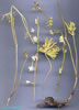 D. cyphoplectrum Boiss., Diagn. ser. 1(6): 7 (1845). Slender perennial, 25-60 cm, upper part of stem crisply puberulent, glandular-pubescent or glabrous. Stem flexuose, terete, striate. Median cauline leaves long-petioled with narrowly vaginate bases, 3-10 cm across, multisect into linear laciniae. Raceme linear, lax, 2-3.5 cm broad. Bracts linear-lanceolate, much shorter than pedicels; bracteoles similar, attached near base of pedicels, rarely median. Flowers varying from deep violet-blue to dirty white, 16-24 mm; sepals widely spreading; petals ± exserted; spur about as long as sepals, tapering and subacute or ± cylindrical, obtuse or subsaccate. Follicles pubescent or glabrous. Three varieties can be provisionally recognised in Turkey: 1. Inflorescence crisped-puberulent; spur tapering, subacute; flowers 16-20 mm, dusky violet var. stenophyllum 1. Inflorescence glandular-pubescent or glabrous; spur ± cylindrical, obtuse or subsaccate; flowers 20-24 mm 2. Flowers deep violet-blue; laciniae of median leaves less than 1 mm broad var. vanense 2. Flowers whitish; laciniae of median leaves broader var. pallidiflorum var. pallidiflorum (Freyn) Davis in Notes R.B.G. Edinb. 26: 171 (1965). Syn: D. pallidiflorum Freyn in Bull. Herb. Boiss. ser. 2, 1: 254 (1901). Steppe and rocky places, 1900-2400 m. Type: [Turkey B9 Van] Warak Dagh (Erek Da.), 2700 m, 27 vi 1899, A. Kroneburg 166. S.E. Anatolia. B9 Van: Çuhgediği pass, between Hoşap and Başkale, 2340-2370 m, Hub.-Mor. 10948! D. quercetorum Boiss. & Hausskn. (described from N. Iraq) is probably synonymous, the plant showing considerable variation in indumentum, spur shape and bracteole position. D. cyphoplectrum is a very polymorphic, Irano-Turanian species, widespread in parts of Iran, Transcaucasia and N. Iraq. D. talychensis Tzvel. and D. nachic-zevanicum Tzvel. (recently described from Transcaucasia) are conspecific with D. cyphoplectrum as interpreted here, which evidently comprises a series of variable geographical races which need further study. It is not clear to me whether D. cyphoplectrum sensu stricto is specifically distinct from D. tuberosum Aucher ex Boiss. which has been collected at the locus classicus of D. cyphoplectrum in Iran and provides an earlier name. |