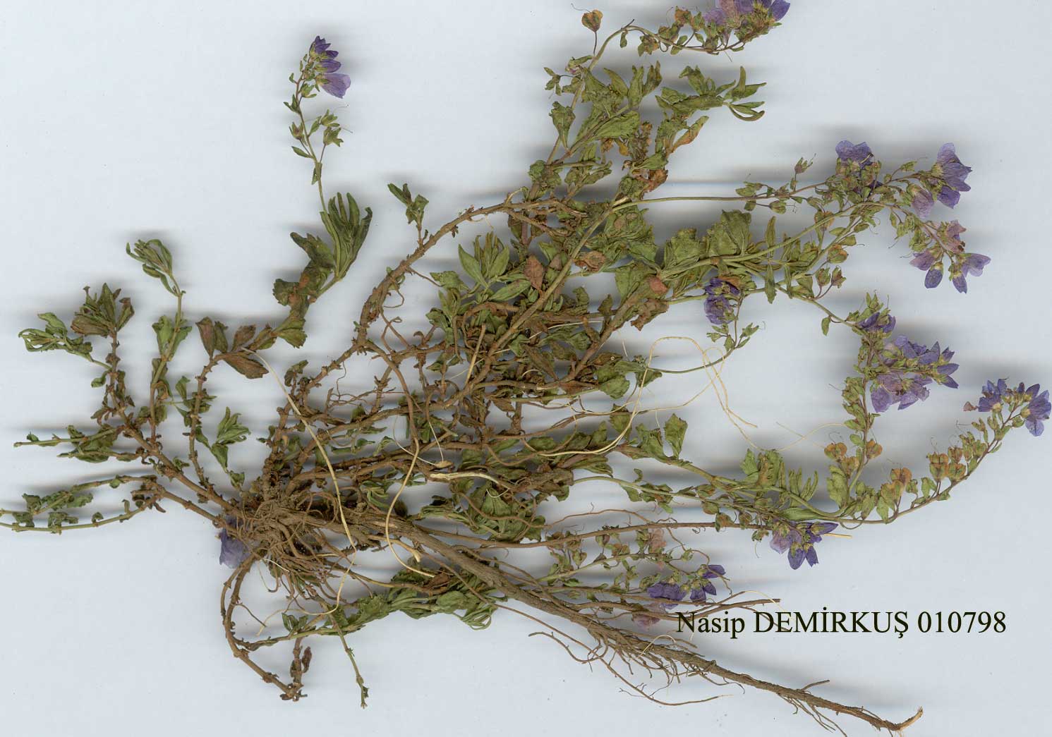V. gentianoides Vahl, Symb. 1:1 (1790). Syn: V. pallida Hornem., Hort. Hafn. 17(1813); V. olympica Pallas ex Link in Jahrb. Gewächsk. 1(3):40 (1820); V. gentianoides Vahl var. glacialis Náb. in Publ. Fak. Sci. Univ. Masaryk Brno 70: 34 (1926). Ic: Fl. URSS 22: t. 14 f. 1 (1955). Shortly creeping perennial herb, sometimes forming mats. Rhizome branched, 4-7 mm diam., with leaf rosettes. Flowering stems unbranched, ascending to erect, 5-60 cm, usually glabrous, sparsely pubescent towards inflorescence. Leaves broadly elliptic to lanceolate, oblanceolate or linear, 15-80(-150)x (l-)3-15(-20) mm, ± thick or subcoriaceous, shining, midrib often whitish; apex acute or obtuse; margin narrowly cartilaginous, entire or remotely and irregularly denticulate to crenulate (rarely distinctly serrate); basal often crowded forming ± distinct rosette, ± petiolate, connate and vaginate at base (sheaths 5-15 mm), usually glabrous; cauline smaller, sessile, 1-5-paired, with short sheaths, often ± pubescent with usually very short glandular hairs. Raceme 10-50-flowered, indistinctly delimited from vegetative portion, often with sterile bracts at base, densely glandular-(rarely eglandular-) pubescent with short patent hairs. Pedicels 5-15 mm, 1-3 x bracts. Calyx 2-3.5 mm in flower, lobes 4(-5). Corolla dark to pale blue, 8-16 mm diam. Style (3-)4-8 mm. Capsule orbicular, 4-7 x 5-7 mm, usually exceeding calyx, usually glandular-pubescent, emargi-nate (sinus 0.10-0.14 x capsule length). Seeds numerous, orbicular to elliptic, 1.8-2.4 x 1.5-2 mm, flat, smooth. Fl. 5-8. Forests, damp meadows, pastures, wet places, rocky alpine slopes, 1000-3600 m. Type: [Turkey] in Cappadocia, 'Veronica orientalis erecta gentianellae foliis', Tournefort (holo. C, photo! iso. P-Tourn. 717, photo!). N. & Inner Anatolia. A2(A) Bursa: Ulu Da., 1600m, Bornm. 1899:5373! A3 Bolu: Ala Da. on Kartal Kaya Tepe, 2100-2200 m, D. 37411! A4 Çankiri: d. Ilgaz, Ilgaz Da., southern part, 1680 m, Hııb.-Mor. 14031! A5 Amasya: Ak Da., 1700 m, A.Baytop (ISTE 29438)! A6 Ordu: Erdaş above Çambaşi, 2000 m, Tobey 1406! A7 Trabzon: Trabzon to Maçka, Malaka Da., Anşın (ISTO 16465! A8 Gümüşane: d. Gümüşane, Kop Da., 2400 m, Furse & Synge 860!A9 Çoruh: Şavşat, Çenkelek Y., 2400 m, Yüksel (ISTE 35329)! B2 Kütahya: Simav, Kiçir to Ak Da., 1700 m, Coode & Jones 2672! B3 Eskişehir: Sündiken Da., Ekim 818! B4 Ankara: Elma Da. nr Ankara, 1700 m, Kotte! B5 Kayseri: Erciyas Da., 3200 m, Bal. 1856:1028! B7 Tunceli: Munzur Da. above Ovacik, 1650 m, D. 31422! B8 Erzurum: mts. between Erzurum and Çat, 3000 m, Rix 1056! B9 Van: Artos Da., 3000 m, D. 22860! B10 Kars: N.E. slope of Ağri Da. nr Serdar Bulak, 2500 m, D. 43753! C4 Konya: Bozkir, Tuzan De., Çetik 136! C9 Hakkari: Kara Da., 3500 m, D. 24458 (var.glacialis)! C10 Hakkari: Sat Da., N.W. of Sat G, 2850 m, D. 45509 (var. glacialis)! Caucasia, N.W. [ran. Hyrcano-Euxine (mt.) element. Extremely variable, especially in size and leaf shape. The typical forms from lower altitudes are continuously linked with dwarf alpine forms (5-10 cm tall) with small oblanceo-late leaves (15-25x 3-5 mm) and 3-4 mm style, which occur between 2500 and 3500 m. The latter have been described as var. glacialis Náb. V. sumilensis Freyn & Sint. (in Bull. Herb. Boiss. 4:55, 1896) is very similar to var. glacialis, but differs by leaves lacking a cartilaginous margin; more eglandu-lar curved hairs and fewer glandular hairs in inflorescence; style 2.5-3 mm; capsules 2.5-3.5 x 3.4 mm; seeds 1 x 0.8 mm. It is known only from the syntypes, [Turkey A7 Trabzon] Sumila (Meryemana), Sint. 1889:1731 and [A7 Gümüşane] Karagöl Da., Alask to Savesi, Sint. 1894:7237! and its taxonomic status remains uncertain. |