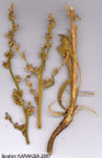 | A. virgatum (Labill.) Bornm. in Beih. Bot. Centr. 38(2):351 (1921). Biennial, erect (10-)30-70(-170) cm, usually pubescent-scabrid, rarely glabrous. Stem with leaf rosette, leaves crowded in lower part, rarely stem leafy throughout, simply branched from middle. Rosette-leaves and lower cauline leaves oblong-lanceolate, acute to ± obtuse, (2-)5-6(-15) x 0.5-l(-3) cm, slightly dentate, often undulate, narrowed into 2-4 cm petiole. Inflorescence mostly simply branched, composed of virgate, interruptedly spicate branches. Flowers in clusters of 2-5, single at apex, subsessile. Bracts lanceolate to broadly ovate. Calyx lobes lanceolate, 2-3(-4) x 1-1.5 mm, erect. Ovary cylindrical, ribbed, glabrous or with stiff white hairs between ribs. Corolla lobes blue-violet. Stigmas 2-3 or 3(-4). Capsule ellipsoid, rarely ± globose, sometimes elongate and constricted at apex, (4-)5-7(-l 1) x 3-4 mm. opening by 3 ± apical pores. Seeds ellipsoid, light to reddish-brown, shiny. 1. Bracts lanceolate; corolla lobes 6-7(-9)x 1-1.5 mm; stigmas 2-3(-4); ovary glabrous, rarely papillose, often elongate and constricted at apex; seeds 1.4-1.8 mm subsp. virgatum 1. Bracts broadly ovate; corolla lobes 8-10 x 1 .5-2 mm; stigmas 3 ; ovary with ± stiff white hairs between ribs, not constricted and elongate; seeds 1 .3-1 .5 mm subsp. cichoriiforme subsp. virgatum. Syn: Campanula virgata Labill., Icon. PI. Syr. 2: 11, t. 6 (1791)! Podanthum virgatum (Labill.) Boiss., Fl. Or. 3:946 (1875)! P. sintenisii Hausskn. ex Bornm. in Mitt. Thür. Bot. Ver. ser. 2, 20:35 (1905); Asyneuma cappadocicum (Boiss.) Bornm. in Beih. Bot. Centr. 38(2): 340 (1921)! A. brachylobum (Boiss.) Bornm., loc. cit. (1921)! A. leianthum (Trautv.) Bornm., op. cit. 343 (1921)! A. obtusifolium (Hausskn. ex Bornm.) Bornm., op. cit. 346 (1921)! A. aizoon (Hausskn. ex Bornm.) Bornm., loc. cit. (1921)! A. sintenisii (Hausskn. ex Bornm.) Bornm., op. cit. 349 (1921)! A. cilicicum Contandr. et al. in Ann. Univ. Provence, Sci. 46:56 (1971)! Asyneutmopsis stipitatum Contandr. et al., op cit. 46:58 (1971)! Ic: Boissiera 17: f. 46, 50, t. A f. 4-5 (1970). 2n = 20, 20 + B, 24. Fl. 6-8. Rocky slopes, meadows, forests, steppes, 400-2800 m. Type: [Lebanon] in Libano, Labillardiére (holo. G! iso. G!). Scattered. S. & Inner Anatolia. A4 Kastamonu: Ilkaz Da. (Ilgaz Da.), 2710 m, Sint. 1892:7773 (type of A. obtusifolium)! A5 Sinop: 13 km W. of Boyabat, 400 m, Sorger 69-16-3! A8 Gümüşane: ravines nr Baibut (Bayburt), Bourgeau 448 (type of A. brachylobum)!. A8/9 Erzurum: d. Olty (Oltu), Olti-tschai (Oltu Çay), Radde 281 (type of A. leianthum)! A/B8 Erzurum: Aşkale to Kop Da. pass, 1900 m, Rech. 37669! B2 Kütahya: Tavşanli to Inegöl, 800 m, Dudley (D. 36136)! B4 Ankara: Ankara, in Kavaklidere, c. 900 m, Bornm. 1929:14369! B6 Sivas: 14 km N. of Sivas, 1350-1500 m, Sorger 69-49-98! B7 Erzincan: Egin (Kemaliye), Sint. 1890:2601 (type of A. sintenisii)! B8 Muş: Murat valley, 26 km from Muş to Varto, 1420 m, D. 46104! B9 Kars: mts. E. of Kağizman, 18-19 km from Akçay to Cumaçay, 2100 m, D. 46779! C4 Konya: d. Ermenek, Ermenek to Balkusan De., D. 16199! C5 Içel: Bulgar Dagh (Bolkar Da.), 1980-2430 m, Kotschy 1853:16c, 48a! C6 Hatay: Medyk Da. towards Antioch (Antakya), 1060 m, Kotschy 1862:137! Soviet Armenia, W. Iran, Lebanon; Latakia? The following depauperate specimens may belong here: A2(A) Bursa: Ulu Da., 2400-2500 m, D. 14863! C2 Muğla: Girdev Da., 2400 m, D. 14029! Within the widespread and variable subsp. virgatum many local populations differing in one or some characters can be recognized. In S.E. Anatolia plants with a leafy stem occur, and in N. Anatolia plants with 2 stigmas and large capsules and seeds are not uncommon. A. brachylobum, A. cappadocicum, A. sintenisii and A. leianthum are based on different characters: size of leaves, length of ovary and calyx lobes etc. These characters are very variable and not correlated. A. cilicicum, described from C5 Adana, and Asyneumopsis stipitatum from B5 Nevşehir, fall within the variation of A. virgatum but differ in their chromosome number (2n = 24, A. virgatum 2n = 20). Further studies based on experimental and cytological data are needed. Probably there may be more taxa in Turkey. Very often, especially in Turkish collections, aberrant plants which had been ± eaten by goats were found. The exact identification of this material, to which A. obtusifolium and A. aizoon are referable, is difficult or impossible. |