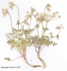 | C. meifolium (Bieb.) Boiss., Fl. Or. 2:880 (1872). Syn: Cnidium meifolium Bieb., Fl. Taur.-Cauc. 3:213 (1819); Carum armenum Boiss. in Ann. Sci. Nat. ser. 3, 1:137(1844). Ascending, glabrous, branched perennial with a woody fusiform root. Stems finely ridged, (3-)10-35 cm. Basal leaves ovate-triangular, 2-pinnate, up to 8 x 2.5 cm; ultimate segments ovate, lobed or pinnatisect, up to 10x2.5 mm. Petiole usually longer than rachis, sheathed. Upper cauline leaves few, small, with broad sheathing petioles. Rays 3-12, unequal, 1-4 cm. Bracts 2-10, simple, c. 7 xO.5 mm, or leaf-like, deflexed in fruit. Bracteoles 2-8, 2-8.5 mm, deflexed in fruit. Flowers white or pinkish, 10-12 per umbellule. Fruits glabrous, ellipsoid, c. 5 x 2.5 mm; styles c. 0.5 mm; stylopodium flat-conical. Fl. 7-8. Alpine meadows, loose rocks, 1600-2560 m. Type: 'Hab. in Caucasia alpestribus' (LE). N. & E. Anatolia. A6 Sivas: Çamlibel pass between Yildizeli and Artova, 1700 m, 1939, Reese. Ordu: Erdaş above Çambaşi, 2000 m, Tobey 1412! A7 Gümüşane: Karagöl Da., Sint. 1894:7275! Giresun: Balaban dağlari above Tamdere, 2400 m, D. 20659! A8 Rize: d. Ikizdere, Çarankaya Y., 2300 m, D. 20967! Trabzon: Soğanli pass, 2440 m, Archibald 3287! Erzurum: 39 km from Erzurum to Tonum, 1980 m, Hıtb.-Mor. 15401: Gümüşane: Sakarsu, N. of Bayburt, 2560 m, Balls 1670a! Çoruh: nr. Artvin 'Grossheim 7: map 81). A9 Çoruh: nr. Şavşat (Grossheim 7: map 81); Kars: 14 km from Selim to Sarikamiş, 1920 m, Hub.-Mor. 15404. B7 Erzincan: Sipikör Da., 2000 m, Hub.-Mor. 12011. Caucasus, Georgia. Intergrading varieties have been recognized in this species such as var. divergens (Boiss. & Huet) Boiss., with dwarf or sub-absent stems, and var. rhodantlum Troitsky with pink petals. |