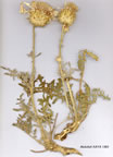 | C. carduiformis DC., Prodr. 6:590 (1838). Biennial (or more rarely perennial) with thickened taproot, stem erect, (10-)20-90 cm, usually branched only in upper part with 3-5 capitula (sometimes branched more profusely). Stem and leaves (especially below) hispid or arachnoid-tomentose. Leaves l-2-pinnatisect, larger segments l.5-8(-12) mm broad, terminal equal or only slightly larger, small segments usually present between large ones. Involucre 17-25(-30) x(15-)20-25(-30) mm, ovoid. Appendages only partly concealing basal part of phyllaries, triangular, gradually narrowed into spine, 10-30 mm (incl. spine), dark to light brown, with numerous cilia on each side ( ± ascending the spine), (l.5-)4-5(-8) mm. Flowers rose-purple or whitish (nerves usually orange). Achenes 5-6(-8) mm; pappus (6-)7-10 mm, inner row 1.5-2.5 mm. 1. Stem and leaves not hispid, arachnoid (floccose)-tomentose; appendages 4-6 mm broad at base subsp. orientalis 1. Base of stem and lower side of leaves hispid with septate hairs; appendages 2.5-3.5(-4) mm broad at base subsp. carduiformis 2. Appendages (incl. spine) usually more than 15 mm, cilia 3-5(-8) mm var. carduiformis 2. Appendages 10-15 mm, cilia 1.5-2 mm var. thrinciifolia subsp. carduiformis. var. thrinciifolia (DC.) Wagenitz in Willdenowia 6:496 (1972). Syn: C. thrinciifolia DC, Prodr. 6:590 (1838)! Colymbada thrinciifolia (DC.) Holub in Folia Geobot. & Phytotax. 7:316 (1972)! Alt. c. 900 m. Type: [Turkey B7?] in Cappadocia ad Euphratem, Aucher 3148 (holo. G-DC! iso. G! K!). E. Anatolia, rare. B6 Malatya: 20 km W. of Malatya, 900 m, Hub.-Mor. 9487! Syrian Desert. Another gathering from B6 Sivas (19 km E. of Hafik, 1300 m, Hub.-Mor. 11944) is intermediate between this variety and var. carduiformis. |