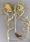 | C. lappaceum (Bieb.) Fischer in Cat. Jard. Gorenki ed. 2:35 (1812). Many-stemmed perennial, 30-120 cm. Stems sometimes branched, unwinged, fioccose-arachnoid. Median cauline leaves semi-amplexicaul, oblong, pinnatifid to pinnatisect, lateral lobes bifid, 2-8-paired, broadly triangular to lanceolate, lateral and terminal lobes with weak to stout 1-24 mm apical spines, spinose-strigose above, with setae 0.3-3.0 mm, otherwise ± glabrous; tomentose below. Lateral branches 0-many, short or elongate, 1-7-capitulate; uppermost leaves 1-6, usually longer than involucre, semi-involucrate or not. Involucres erect in racemose panicles or racemes, globose-ovoid to broadly obovoid, 10-25 mm. Phyllaries arachnoid, 7-10-seriate; median 6-13 mm incl. refiexed or recurved c. 1-2x0.2 mm apical spine. Corollas whitish to pinkish-purple, 12-20 mm. Achenes 4.5-6.0 mm. Pappus 10-17 mm. Fl. 7-9. Three subspecies of C. lappaceum occur in Turkey, and show some degree of overlap. 1. Involucres long-peduncled in loose racemose panicles, corollas whitish subsp.lappaceum 1. Involucres in dense racemes or dense racemose panicles, corollas whitish to purple 2. Apical spine of lobes of median cauline leaf moderately stout to stout, more than 5 mm, the longer leaf lobes broadly triangular to broadly lanceolate subsp. anatolicum 2. Apical spine of lobes of median cauline leaf weak, short, less than 5 mm, the longer leaf lobes elongate-triangular to linear-lanceolate (plant usually more slender than subsp. anatolicum) subsp. tenuilobum subsp. tenuilobum (C.Koch) Davis & Parris in Notes R.B.G. Edinb. 33:430 (1975). Syn: Epitrachys tenuiloba C.Koch in Linnaea 24:400 (1851); Cirsium tenuilobum (C.Koch) Boiss., Fl. Or. 3:534 (1875); C. racemosum Boiss. in Tchihat., Asie Min. Bot. 2:338 (1860). Figure 18, p. 379. Map 42, p. 389. Edges of cultivated fields, fallow fields, steppe, 1520-2300 m. Syntypes: [Turkey A8 Çoruh] in dem Gaue Artahan auf Trachyt und Lawa c. 1520 m, im Gaue Narriman auf Trachyt, c. 1520 m, in der Nähe der Eufratquellen auf Dolerit imd Trachytkonglomerat, c. 2130 m, C.Koch. Inner Anatolia. A4 Ankara: N. of Guétchéren (Keçiören), Frères E.C.I A7 Sivas: Suşehri, 1524 m, Balls 2041! A9 Kars: Kars to Selim, 1750 m, D. 32653! Yalnizçam, 1800 m, D. 32549! B8 Erzurum: between foot of Bingöldağ and Araxis (Aras), 1829 m, Tchihatcheff! Endemic. Ir.-Tur. element. D. 24841 (B6 Sivas: Deliktaş, between Sivas and Kargal, 1900 m) approaches subsp. anatolicum. D. 47148 (B9 Ağri: Suluçem, S. end of Balik G., 2300 m) approaches subsp. lappaceum. Subsp. hermonis (Boiss.) Petrak, closely related to subsp. anatolicum, is confined to the Anti-Lebanon and Mt. Hermon |