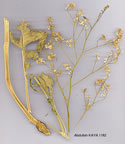 | C. orientalis L., Sp. PL 671 (1753). Perennial 40-120 cm, with a much branched, loose inflorescence and large,scabrous (rarely glabrous, var. glaberrima) leaves. Lower leaves oblong-lanceolate, coarsely lobed or toothed or more often pinnatisect with 4-5 lobes. Upper leaves much smaller, entire, shortly petiolate. Petals white, rarely yellow (var. sulphured) as long as broad. Fruiting pedicels 4-8(-10) mm. Fruit 3.5 x 3.5-4 mm, basal member 0.5-1 mm. Fl. 5-7. Cultivated places, fallow fields, dry slopes, 500-2800 m. 1. Lower member of fruit 0.7-1 mm, upper member 2.5-3.5(-4.5) mm var. orientalis 1. Lower member of fruit 1.5-2 mm, upper member 4 mm var. alutacea var. orientalis. Ic.: Jaub. & Spach, 111. Or. 5: t. 433 (1853-57). Figure 11, p. 253. Described from the Orient. Widespread in Inner Anatolia. A4 Çankiri: Ilgaz to Çankiri, D. 21473! A6 Tokat: Sivas to Tokat, S of Artova, Reese. A7 Gümüşane: Ketschikale (22 km ESE Gümüşane), Sint. 1894: 6145! Erzurum: Erzurum, Zohrab 355. A9 Kars: Susuz, 1750 m, D. 30655! B4 Ankara: Elma Da., 1200 m, Markgraf 11085! B5 Kayseri: Develi, D. 19175! B6 Malatya: nr. Akçadağ, 1000 m, D. 27659! Sivas: Zara, Guichard 64/60! B9 Van: Ispiriz Da., 2700 m, D. 23726! Muş: Malazgirt, 1500 m, Schischkin. Bitlis: Tatvan, 1800 m, D. 22336! C5 Niğde: Bulgar Maaden, 1300 m, Siehe 1896: 560! C6 Urfa: Birecik, Sint. 1888: 400! Maraş: 15 km W of Maraş, 500 m, D. 27433! C7 Urfa: Urfa to Hilvan, 750 m, D. 28232! Arid areas of S.W. Asia. Ir.-Tur. element. |
