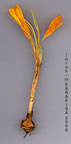 | C. chrysanthus (Herbert) Herbert in Bot. Reg. 29: Misc. 27 (1843). Syn: C. annulatus Herbert var. chrysanthus Herbert in Bot. Mag. 67: sub t. 3862 (1841)! C. sulphureus Griseb., Spic. 2:373 (1845); C. croceus C. Koch in Linnaea 19:7(1847)! C.skorpili Velen., Fl. Bulg. 537 (1891)! Ic:Bot.Mag. 101: t. 6162 (1875); Maw, Monogr. Crocus t. 62 f. 1 a, b,c (1886). Map 61. Corm tunic membranous or coriaceous splitting into rings at base, rings entire or toothed. Leaves 3-5(-6), synanthous, 0.5-2.5 mm broad. Prophyll absent. Bracteole present, usually much narrower than bract. Throat of perianth yellow, glabrous; segments 1.5-3.5 x 0.5-1.1 cm, yellow to orange-yellow, sometimes striped or suffused with bronze or purple outside, rarely creamy-white. Filaments 3-6 mm, yellow, glabrous; anthers 6-12 mm, yellow, sometimes with black basal lobes, rarely wholly black-edged before dehiscence. Style dividing into 3 slender or expanded yellow to orange branches. 2n =8,10,12, 14, 16, 20. Fl. 2-4(-7). Open hillsides in short turf, sparse coniferous woods, scrub, s.l-2200 m. Type: [Bulgaria] 'prope Byzantium' [later corrected to read 'in Rournelia*: op. cit. 83, 1843],Frivaldsky(holo. K!). Turkey-in-Europe, N., W., C. & S. Anatolia, Islands. A1(E) Edime: Keşan to Enez, 50 m, A. Baytop (İSTE 23814)! A2(A) Bursa: Ulu Da., 1100 m, Mathew & Tomlinson 4579- (2n = 8)! Bl Izmir: Boz Da., 1450 m, Pasche 82/27! B2 Kütahya: 32 km from Kütahya to Aslanapa, 1350 m,T. Baytop et al 8220 (2n = 14)! B3 Konya: 11 km S.W. of Akşehir, 2200 m, Watson et al. 2592! B5 Kayseri: Bakirdağ, Mathew & Tomlinson 4134 (2n = 20)! B6 |