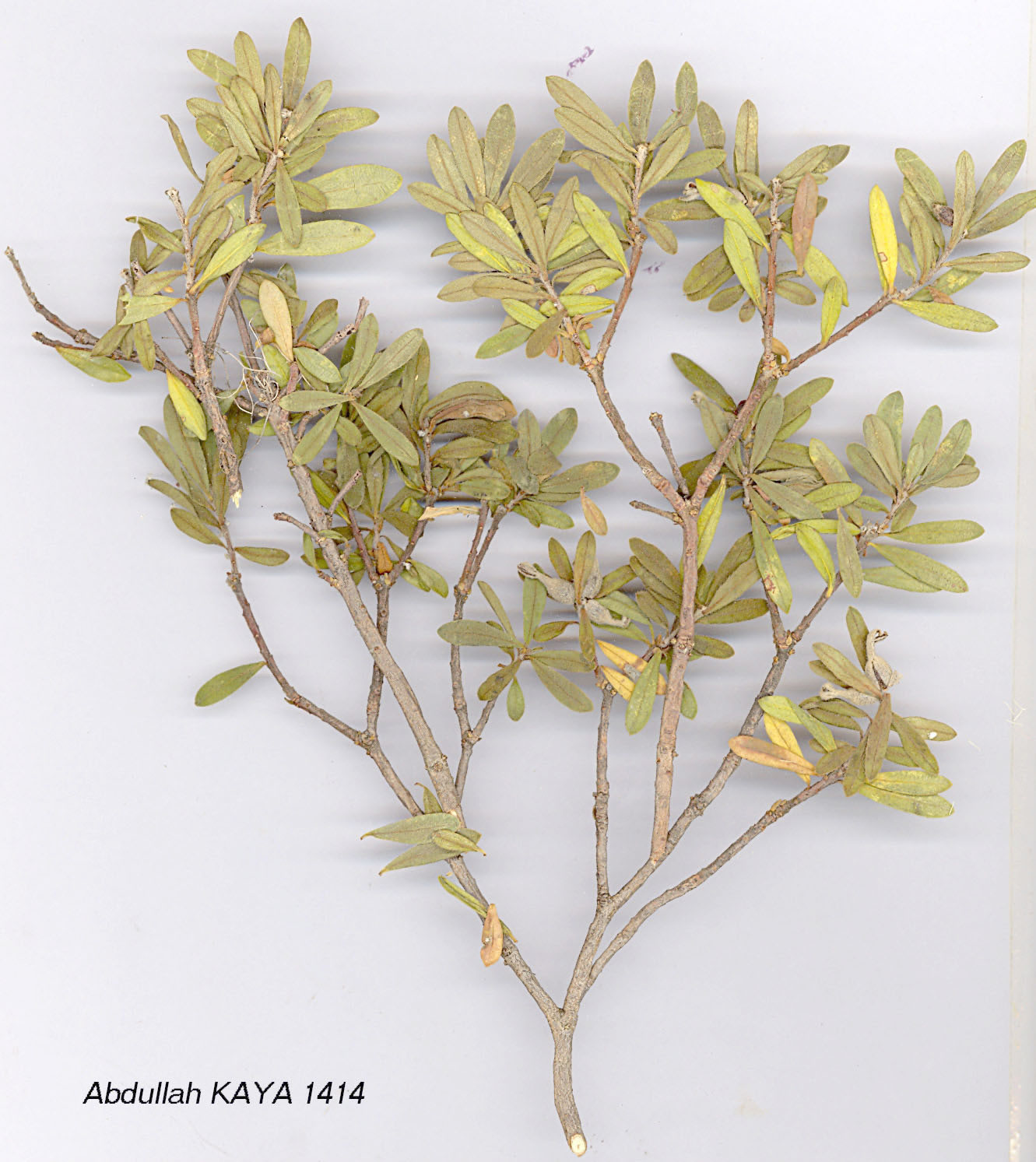 | D. oleoides Schreber, Icon. Descr. Pl. 1:13, t. 7 (1766). Erect highly branched shrub, 15-60 cm. Young shoots reddish-brown, densely pubescent or sericeous, older branches glabrous, bark grey. Leaves subsessile or with petioles 1-2 mm, coriaceous, obovate, oblanceolate or elliptic, 10-25(-30) x (3-)4-6(-9) mm, broadly acute, obtuse or mucronate, glaucous, margins thickened; young leaves densely or sparsely white-pilose, adaxial surface often glabrescent. Flowers sessile, fragrant, in terminal clusters of 3-6. Bracts absent or minute, triangular-ovate, 2x1 mm, acute, caducous. Perianth 10-16 mm, white or creamy-white, adpressed-pubescent or sericeous-villous; lobes acute. Ovary pubescent. Fruit ovoid, 4-6 mm, orange-red. This is a very variable species so far as habit, degree of pubescence, leaf and flower size are concerned. 1. Perianth lobes narrowly triangular or lanceolate, (3-)4-8 x 0.5-1.5 mm subsp. oleoides 1. Perianth lobes ovate or triangular-ovate, (2-)3-5 x 1.5-3.5 mm subsp. kurdica subsp. oleoides. Syn: D. buxifolia Vahl, Symb. 1:29 (1790);D. alpina Sm. in Sibth. & Sm., Prodr. Fl. Graec. 1:261 (1809) non L. (1753); D. glandulosa Bertol., Amoen. Ital. 356 (1819); D. jasminea Griseb., Spic. 2:321 (1846), non Sm. (1809); D. oleoides Schreber var. brachyloba Meissner in DC, Prodr. 14:534 (1857); D. oleoides Schreber var. glandulosa (Bertol.) Keissler f. puberula (Jaub. & Spach) Keissler in Bot. Jahrb. 25:49 (1898). Ic: Sibth. & Sm., Fl. Graeca 4: t. 357 (1824); Brickell & Mathew, Daphne, p. 14, t. (1976). Fl. 5-8. Limestone slopes and screes, Quercus scrub, Pinus nigra forest, Astragalus-Acantholimon steppe, by streams, roadsides, 1050-3200 m. Type: [Crete] In Cretae montosis, 'Thymelaea cretica oleaefolio utrinque glabro', Tournefort (iso. P—Tourn. 5833, photo!). Outer & C. Anatolia. A2(A) Bursa: Ulu Da., 2200 m, Rech. 15371a & b! A3 Bolu: Ala Da. on Kartal Kaya Tepe, 2100 m, D. 37414! A4 Kastamonu: Ilgaz Da., 35 km S. of Kastamonu, 1770 m, Edmondson 605! A6 Sivas: Yildiz Da. 2000 m, Sorger 69-58-104! A7 Gümüşane: 10 km S. of Kale, 1500 m, It. Leyd. 1959:1696! Bl Balikesir: Kaz Da., Sint 1883:458! B2 Kütahya: Murat Da. (above Gediz), 1600 m, D. 36734! B3 Isparta: Barla Da., 2250 m, Khan et al. 372! B5 Niğde: Hasan Da., below Taşpinar Y., 1900 m, D. 19012! B6 Sivas: Gürün to Sivas, 1400 m, Stn. & Hend. 5742! B7 Erzincan: Sipikör Da., Sint. 1889:1271! C2 Denizli: Baba Da., 1650-2350 m, D. 249! C3 Burdur: c. 20 km from Burdur to Antalya, 1300 m, Dudley (D. 35672)! C4 Antalya/ Konya: 60 km N.N.E. of Demirtaş, 1370 m, Spitzenberger 13! C5 Niğde: Ala Da., 2440-3200 m, Wood & Gibson 216! C6 Maraş: Ağca Da., 1700 m, Sorger 73-15-76! S. Europe, N.W. Africa, Lebanon. |
