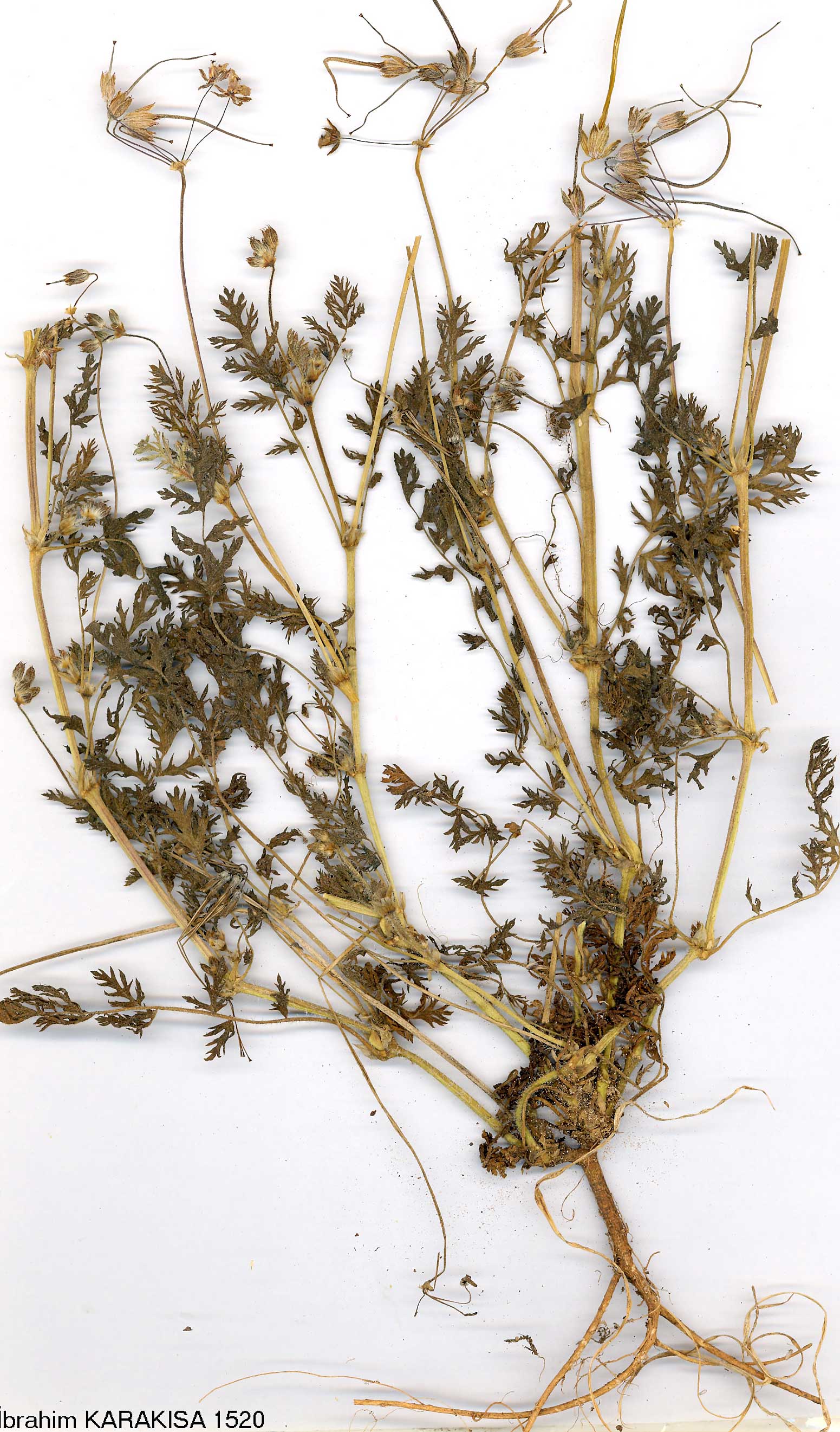| E. cicutarium (L.) L'Hérit. in Aiton, Hort. Kew. 2: 414 (1789). Syn: Geranium cicutarium L., Sp. PL 680 (1753). Caulescent annual (though stems sometimes very short in early spring), up to 40 cm. Basal leaves pinnate, leaflets ovate-oblong, 4-10 mm, deeply pinnatifid into entire or few-toothed segments. Cauline leaves with leaflets deeply 1-2-pinnatifid. Stipules usually ovate. Sepals 4-5 mm, up to 7 mm in fruit; awn 0.2-0.5 mm, usually bearing 1 or more long terminal bristles. Petals ovate, not overlapping, mauve or pink, 1½-2 x sepals. Beak of fruit 2.5-3.5 cm. Mericarps c. 5 mm, foveoles eglandular, often with a narrow, shallow furrow beneath. - A very variable species. Two subspecies may be recognised in Turkey: 1. Mericarps with a furrow below the foveoles; basal and stem leaves usually dissimilar, leaflets with acute laciniae subsp. cicutarium 1. Mericarps without a furrow below the foveoles; basal and stem leaves similar, leaflets with obtuse laciniae subsp. bipinnatum subsp. cicutarium. Ic: Ross-Craig, Draw. Brit. Fl. 6: t. 42 (1952). Described from Europe (Hb. Cliff! Hb. Linn. 858/43!). A1(E) Çanakkale: Kilia nr; Gelibolu, Ingoldby 45! A1(A) Çanakkale: Erenköy, Kirk! A2(E) Istanbul: Rumeli Hisar, 23 v 1918, B. Post! A2(A) Istanbul: Büyük Ada, 8 iii 1936, B. Post! A3 Sakarya: Sapanca, 100 m, D. 26270! A4 Ankara: Çubuk De., Krause 5487! A5 Samsun: nr. Bafra, 3 m, Tobey 443a! A7 Trabzon: Kalanema De., obs. Hand.-Mazz. A8 Rize: d. Hemşin, Ortaköy to Cat, D. 22193. A9 Çoruh: Nof Ardanuç (Grossheim 6: map 31). B1 Izmir: Bergama to Akropol, 1950, Heilbronn & Attila! B3 Eskişehir: 18 miles from Polatlı to Sivrihisar, 800 m, Coode & Jones 2289! B4 Konya: Cihanbeyli, D. 18726. B5 Yozgat: 7 miles from Yozgat to Sorgun, 1300 m, Coode & Jones 1617! B6 Seyhan: Saimbeyli, 1100 m, D. 26686! B7 Erzincan: Erzincan, 1940, Bağda! B9 Van: Adramit, Tchitouny 127. Cl Izmir: Torbali to Ephesus, 50 m, D. 25147 p.p.! C2 Muğla: Kisge to Kazağaç, 550 m, D. 41055! C3 Antalya: Elmali to Korkuteli, 1120 m, Dudley, D. 35219. C4 Konya: Küçük Köy nr. Çumra, 980 m, Helbaek 2426! Ç5 Seyhan: Pozanti, 800 m, D. 26319! C6 Hatay: above Iskenderun, D. 26981! C8 Mardin: Mardin to Nusaybin, 750 m, D. 28478! Is: Lesvos, Cand.; Samos, Rech. 3936! Ikaria, Rech. 4426; Fournoi, Rech. 4722; Kalimnos, Fors.-Maj. 821; Kos, D. 40466! Rodhos, Rech. 7339. Europe, N. Africa, S.W. Asia; naturalised in America, Australia, E. Africa. Sub acaulous, spring-flowering plants are readily confused with E. acaule. |