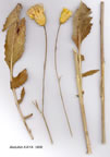 | S. coriacea Fisch. & Mey. ex DC, Prodr. 6:668 (1838). Ic: Fl. URSS 28: t. 16 f. 3 (1963). Map 53, p. 457. Plant up to 1.5 m. Stems virgate, glabrous, branching above. Leaves coriaceous, lyrate-pinnatifid to lyrate-pinnate/pinnatisect, 16-20 x 5-6 cm, lateral segments c. 2-4-paired, coarsely serrate in lower leaves, becoming entire above. Capitula pedunculate in loose ± fastigiate corymbose panicles. Involucre cup-shaped, 17-22 x 10-15 mm; outer phyllaries c. 7-seriate, ovate-mucronate, yellowish-green, inner longer and more irregularly arranged. Flowers purple, slightly exceeding involucre. Pappus of barbellate hairs. Fl. 7-8. Dry gravelly hills, fallow fields, 1100 -1830 m. Syntypes: [Caucasia] in glareosis et lapidosis prov. Aderbeischan et Nakit-schewan, Szowits (K!); [Iran] in Persia, Aucher 3202. E. Anatolia. A9 Kars: Kağizman to Akçay, 1100-1200 m, D. 46851! B9 Van:Van to Edremit, D. 23172! B9/10 Kars: Araxes (Aras) valley W. of Iğdir, Furse 9124! C9 Hakkari: Cilo Da. in Diz De., 1830 m, D. 22256! N.W. Iran, Transcaucasia. Ir.-Tur. element. |