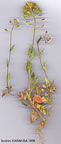 | T. violascens Boiss., Fl. Or. 1: 328 (1867). Glaucescent annual, c. 20 cm, single or several-stemmed, often tinged purple at base, unbranched. Basal leaves rosette-forming, oblong-spathulate, petiolate, entire or crenate. Cauline leaves ovate-oblong, entire or toothed, auriculate. Petals 3-3.5 x 1 mm, scarcely exceeding the violet sepals. Inflorescence much elongating in fruit. Siliculae obtriangular, 7-10 x 5-7 mm, long-cuneate at base, tips of wings rounded, sinus narrow, stigma not exceeding the sinus; septum 6-7 mm x 2 mm. Seeds 4 in each loculus. Fl. 4-5. Slopes and screes, 900-1800 m. Type: [Turkey C5 Seyhan] in Tauri Cilicici ad Gülek Boghas, Kotschy (holo. G!). Cilicia, Amanus, N. Anatolia. A4 Kastamonu: Ilgaz to Kastamonu, 1800 m, Hub.-Mor. 14836! AS Amasya: Abadschi Da., 1200-1300 m, Bornm. 1890: 1867! C5 Içel: Elmali Da., 15 km SW of Pozanti, 1600 m, It. Leyd. 1959: 292! Seyhan: Dumanli Da. nr. Haruniye, 900 m, D. 26869! Endemic; there seem to be no differences between the N. Anatolian specimens and those from Cilicia and the Amanus, although the known distribution is disjunct. |