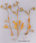 | V. muricata (Stev.) Baxt. in London, Hort. Brit. Suppl. 3:654 (1839). Syn: Fedia muricata Stev. in Roemer & Schultes, Syst. Veg. 1:366 (1817); Valerianella truncata Betcke, Animadv. Valer. 22 (1826); V. truncata Betcke var. muricata (Stev.) Boiss., Fl. Or. 3:106 (1875). Ic: Krok, Mon. Valer. t. 1 f. 4 (1864) as V. truncata; FL URSS 23: t. 34 f. 2 (1958). Figure 17, p. 573. Map 87, p. 591. Height 6-30 cm, lower leaves present or not in fruit, 12-35 x 3-8 mm. Inflorescence obpyramidal or ± capitate, the branches sometimes thickening and inflat-ing in fruit, obscuring the bracts. Bracts 5-6 x 05-2 mm, ± herbaceous, smaller to ± inconspicuous and webbed in the centre of the cymes. Flowers pale bluish to lilac. Fruit 2-2·2 x 0·8-1·1 mm. Fl. 4-6. Rocky slopes, fallow land, s. 1.-650 m. Mainly Outer & E. (southern) Anatolia, Islands. A2(E) Istanbul: Rumeli Hisar, 1 vi 1906, B. Post! Yedikule, 29 v 1904, Azn.! A5 Sinop: promontory at Sinop, Tobey 86! Bl Izmir: Çeşme, 10-50 m, D. 41817! Kemalpaşa, Alava et al. 4862! Cl Aydin: Samsun Da., 40 km from Davutlar, 400 m, Dudley, D. 34953! C5 Adana: Yumurtalik, Coode & Jones 704! C6 Adana: Osmaniye, Toprakkale, 80 m, D. 26901! C7 Urfa: Viranşehir to Ceylanpinar, 500 m, D. 42361! C8 Diyarbakir: Diyarbakir, 650 m, D. 28792! Is: Ikaria, Runemark & Snogerup 6471; Samos, Runemark & Snogerup 19613. S. Europe, S. & C. Russia, Iran, N. Iraq, Caucasia, Palestine, W. Pakistan, C. Asia. |