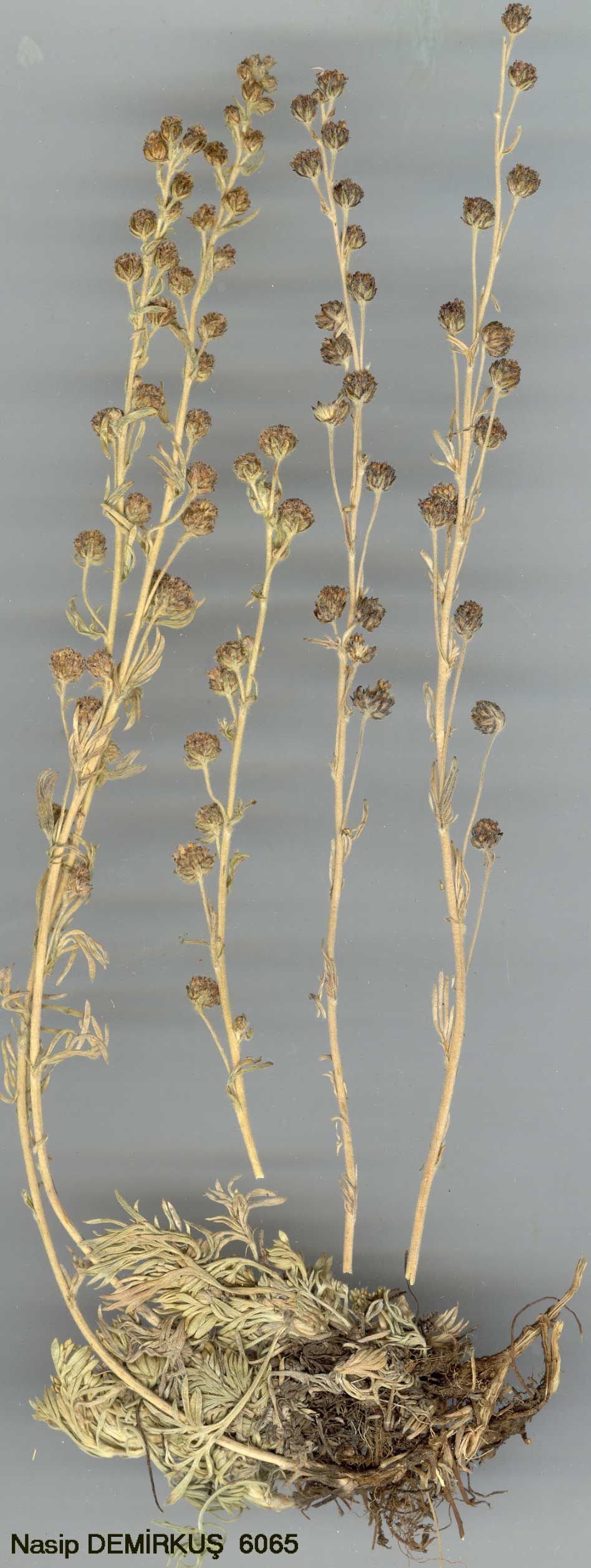 | A. splendens Willd., Sp. Pl. 3(3): 1822 (1803). Figure 15, p. 315. Map 29, p. 321. Tufted or hummock-forming perennial. Flowering stems erect, 10-30 cm, sericeous-pilose. Basal leaves petiolate, up to 2 cm, 2-pinnatisect with oblong to very narrowly elliptic, entire, acute segments, silvery sericeous on both surfaces. Cauline leaves and bracts similar but smaller. Inflorescence a strict, ± secund raceme or very narrow panicle. Capitula erect to somewhat nodding, ± depressed-globose, 5.5-7 mm broad, many-flowered. Receptacle conspicuously pilose. Outer phyllaries ± oblong, with thickened, foliaceous central part and conspicuous dark brown outer scarious part, all tomentose; inner a little longer, mostly scarious. Outer flowers filiform, female, inner hermaphrodite, fertile, corolla reddish, pilose on lobes, inserted ± straight on ovary in flower, becoming some-what oblique after fertilization. Fl. 6-9. Slopes, mountain steppe, 2600-4100 m. Described from Armenia, Tournefort (P-Tourn. 4167, photo!). E. Anatolia. A8 Gümüşane: Kop Da., Bayburt, 2800 m, Balls 1781! B5 Kayseri: Kayseri, Aulich 285! B8 Muş/Erzurum: Bingöl Da., 3300 m, Radde. B9 Bitlis: SüphanDa. above Adilcevaz, 3800-4100 m, D. 24649! Van: Çuhgediği, Hoşap to Başkale, 2800-2880 m, Hub.-Mor. 11225! B10 Ağri: Ararat (Ağri Da.), Szovits! C9 Hakkari: between Başkale and Koçanis, 2600m, Nábelek 3479, 3487. C10 Hakkari: Cilo Tepe, 3500 m, D. 24109! Caucasia, N. Iran, N. Iraq. Ir.-Tur. element. |