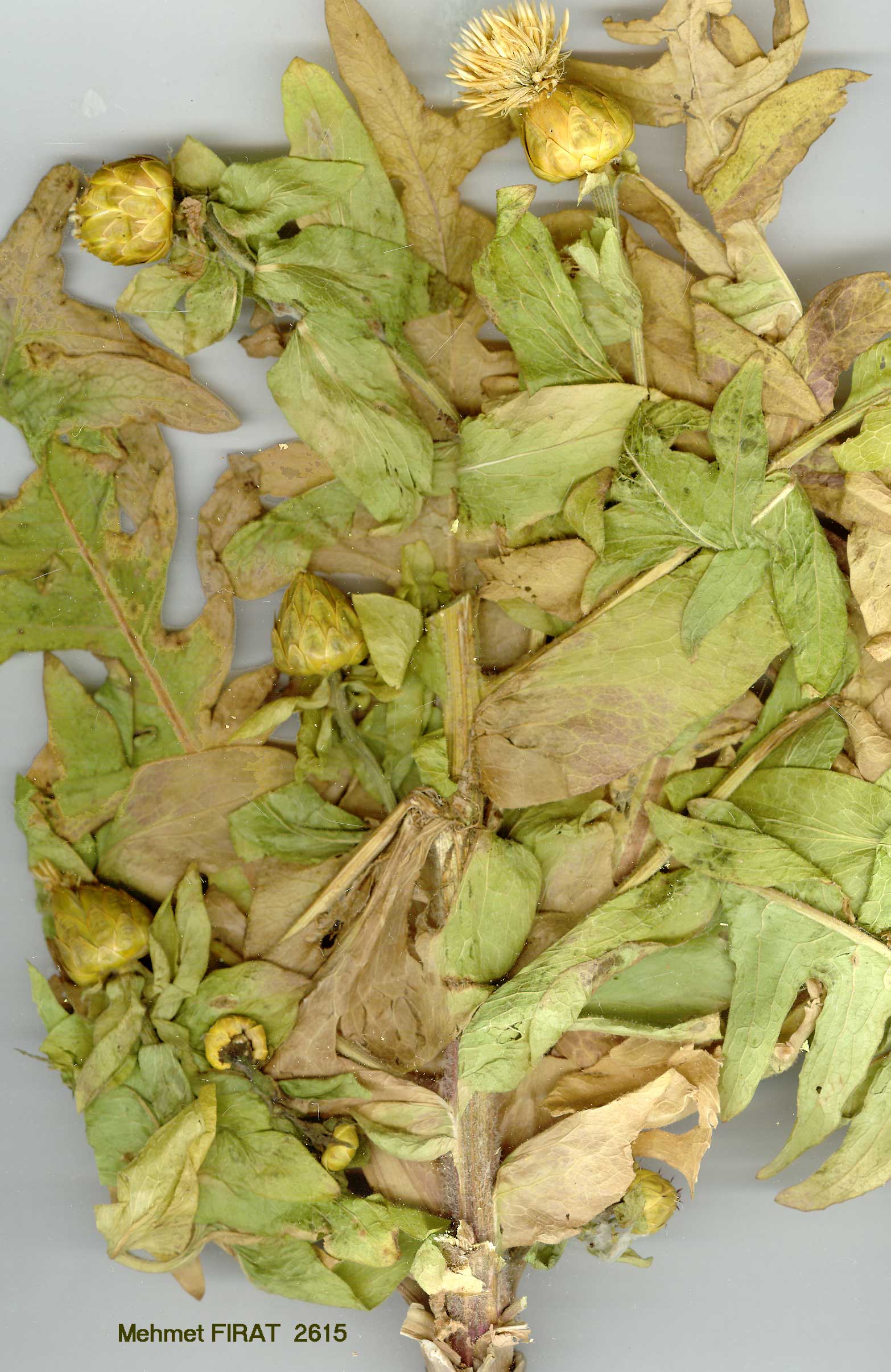 | C. polypodiifolia Boiss., Diagn. ser. 1(6): 126 (1845). Biennial or perennial with thickened taproot, 25-75 (or more?) cm, with numerous branches, capitula corymbosely arranged. Stem, branches, and lowerleaves with crisp articulate hairs, other leaves ± glabrescent. Leaves firm, with elevated nerves; basal pinnatifid with 6-8(-10) pairs of linear-lanceolate acute segments (sometimes lobed near base), lower pinnatilobate, median ovate-oblong, broadly decurrent, upper-ovate to lanceolate, shortly decurrent or sessile. Involucre 16-22 x (8-)9-17 mm, contracted towards top. Appendage a minute deciduous tip, a pinnate spinule up to 6 mm, or lanceolate and ciliate, always small, not concealing basal part of phyllaries. Flowers yellow. Achenes 4-5 mm; pappus 4-8 mm. Fl. 6-8. Rocky slopes, steppe, fallow fields, 800-2500 m. 1. Appendage very small (0.5-2.5 mm) and easily deciduous, a simple spinule or with 1-2 pairs of minute teeth 2. Involucre 8-13 mm broad, rarely broader; upper leaves narrowly lanceolate, not concealing involucre var. polypodiifolia 2 . Involucre 14-17 mm broad; upper leaves broadly lanceolate to oblong, ± concealing involucre var. szovitsiana 1. Appendage larger (3-6 mm), partly persistent, with 2-4 mm cilia var. pseudobehen var. szovitsiana (Boiss.) Wagenitz in Notes R.B.G. Edinb. 33:229 (1974). Syn: C. szovitsiana Boiss., Fl. Or. 3:683 (1875)! Type: [USSR] in siccis lapidosis vallis Koschadara Armeniae Rossicae prope Nackitschewan, 1 vii 1829, Szovits 454 (G! W!). E. Anatolia. B7 Tunceli: Pülümür, 1600 m, D. 30922! B9 Bitlis: Pelli Da. pass, 2400 m, D. 22615! Van: Pelli Da., 1 km E. of pass, 2150 m, Hub.-Mor. 10887! C7 Urfa: Tel Pinar nr Siverek, Sint. 1888:767 (atypical)! |
