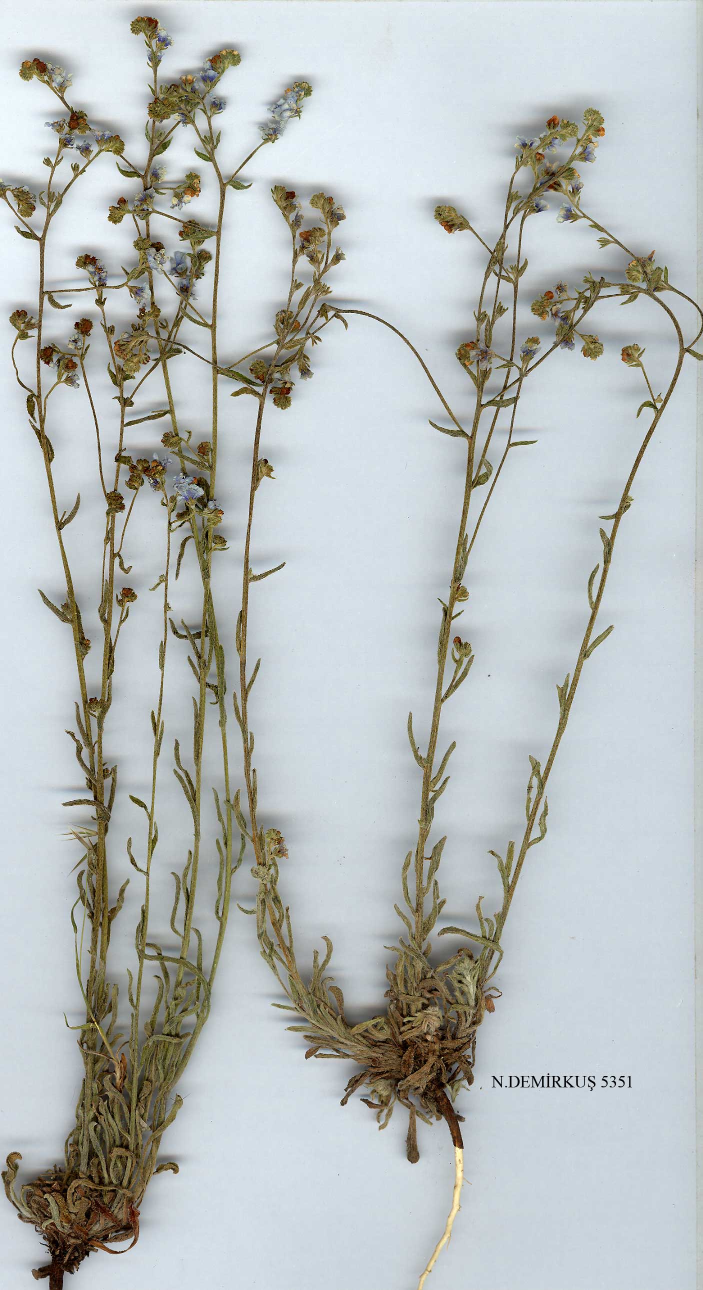 | L. barbata (Bieb.) Gurke in Engler & Prantl, Natürl. Pflanzenfam. ed. 1, 4(3a):107 (1897). Syn: Myosotis barbata Bieb., Fl. Taur.-Cauc. 1:121 (1808); Echinospermum barbatum Lehm., Asperif. 2:128 (1818); E. cariense Boiss., Diagn.ser. 1(4): 40 (1844)! E. saxatile Wettst. inStapf, Polak. Exped. 1:31 (1885); Lappula echinata Gilib. var. cariensis Kuntze in Acta Horti Petrop. 10:214 (1887)! L. saxatilis Kusn. in Fl. Cauc. Crit. 4(2): 183 (1913). Ic: Bieb., Cent. PI. Rar. Ross. t. 36 (1810); Boul., Fl. Lib. Syr. 2: t. 297 (1930). Figures 7, p. 241; 9, p. 245. Biennial, very variable in degree of branching, (15-)20-45(-55) cm, ± sericeous. Leaves narrowly oblanceolate to linear-oblong, basal ± withered at anthesis. Inflorescence much-branched. Flowers distinctly pedicellate, pedicels c. 2 mm and suberect in fruit. Calyx lobes ± narrowly lanceolate, erecto-patent in fruit. Corolla rotate, tube 1.2 mm, limb conspicuous, (4-)5-7 mm diam., sometimes marbled paler and darker blue in sicco. Nutlets depressed-pyriform, c. 3.3 x 1.6 mm, distinctly marginate, with short to l(-l.3) mm narrowly stalked glochids and 1-2 subsidiary rows of shorter (c. 0.3-0.4 mm) glochids especially in lower 1/2; disc and dorsal surface tuberculate, keel of disc ± crested, usually shortly glochidiate. Style distinctly exserted from between tips of nutlets. Fl. 5-7. Steppe, stony and igneous slopes, field margins, waste places, etc., 830-3100 m. Syntypes: [Crimea] in Tauria circa Karassubasar; [Caucasia] ad Caucasum, nec non in Tberia circa oppidulum Mosdok, Marschall von Bieberstein (LE). Mainly Inner & S. Anatolia. A3 Ankara: N.W. of Beypazari, Kühne 547! A4 Ankara: 15 km N. of Ankara, Coode & Jones 2149! A5 Çorum: Osmancik, Kilinç 3780! A6 Tokat: nr Tokat, Krause 3788! A7 Gümüşane: Gümüşane, 10 vi 1862, Bourgeaul A8 Erzurum: W. of lspir, 1400 m, Barclay 786! A9 Kars:8 km from Kars to Susuz, 1800 m, D. 30589! B2 Kütahya: Murat Da. above Gediz, 1400 m, D. 36678! B3 Eskişehir: 15 km E. of Sevinçköy, towards Alpu, 830 m, Buttler 13265! B4 Ankara: Hacikadin De., Bağda 136! B5 Kayseri: Erciyas Da., 1500 m, vi 1902, Zederbauer! B6 Sivas, Sivas, 1525 m, Balls 1449! B7 Erzincan: Paschtasch (Bağiştaş), Sint. 1889:938! B8 Erzurum: 67 km N. of Hinis, 1750 m, M.Zohary 571115! B9 Van: Kavuşşahap Da., 3100 m, D. 23143! B10 Ağri: 18 km from Doğubayazit to lğdir, 1850 m, D. 43541! C2 Denizli: Honaz Da., vi 1842, Boiss. (syntype of E. cariense)! C3 Burdur: by Burdur G., vi 1845, Heldr.! C4 Konya: 34 km S. of Karaman, 1430 m, M.Zohary 2404! C5 Niğde: Bolkar Maden, Siehe 1895:553: C6 Adana: mts. nr Hacin, 4 vii 1906, B.Post ! C10 Hakkari: Nehil Çayi, 48-55 km from Hakkari to Yüksekova, 1600-1700 m, £».44906! Balkans, S. Russia, Caucasia, N., N.W., W. & S. Iran, Khorassan, Afghanistan. ir.-Tur. element. Related to L. microcarpa. |