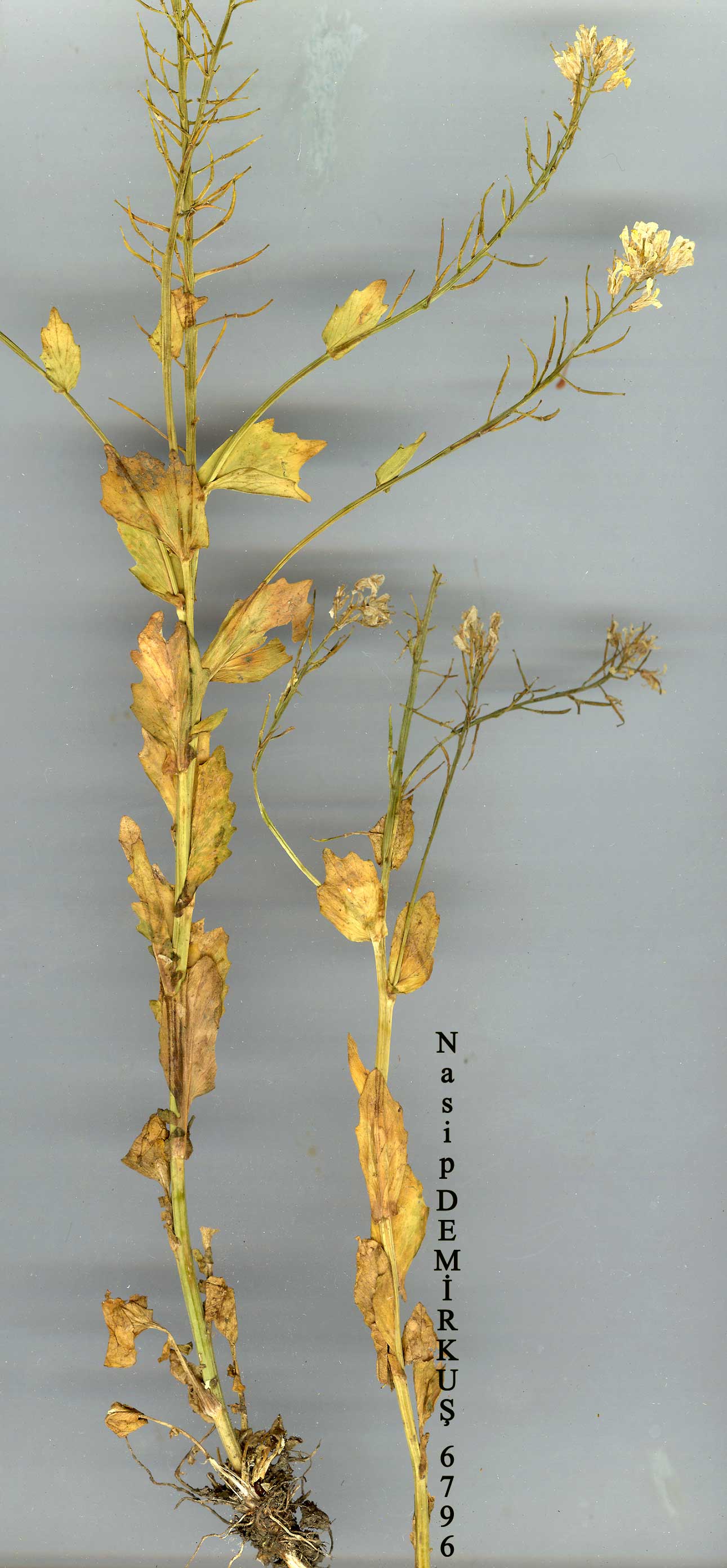 | B. plantaginea DC, Syst. 2: 208 (1821). Ic: Delessert, Ic. PI. 2: 19 (1823). Figüre 19, p. 435. Robust biennial herb. Stems glabrous, 25-60 cm, often branched in the upper part. Lower leaves with a large, ovate-orbicular terminal leaflet, borne on a broad, flat, winged petiole, the wings sometimes expanded to l(-2) pairs of small lateral leaflets. Upper stem leaves amplexicaul, crenate to dentate. Petals yellow, 5-7 mm. Siliquae spreading, terete, somewhat torulose, arcuate, 24-35 x 1.5-2 mm. Fl. 4-6. Streamsides, moist pastures, 1000-2100 m. Type: in Oriente, Tournefort (BM!). Widespread. A4 Ankara: Hacikadin valley, nr. Keçiören, D. 18788! A5 Amasya: Amasya, Ak Da., Bornnı. 1890: 1896. A7 Gümüşane: Gümüşane, Sorda (Surda), Sint. 1894: 5654! A8 Erzurum: Pasinler to Horasan, 1650 m, D. 29433! A9 Çoruh: Kütül, nr. Ardanuç, Woronov 603. B3 Konya: Sultan Da., 1400-1900 m, Bornm. 4057. B4 Ankara: Incesu, Freres de E.C.I B6 Maraş: Bin-boğa Da., nr. Göksun, 1900 m, D. 20100! B7 Tunceli: Pülümür, 1550 m, D. 29272! B8 Erzincan: Tercan to Aşkale, 1650 m, D. 29355! B9 Van: Erek Da., 2100 m, D. 22966! C2 Denizli: HonazDa., 1000 m, Hub.-Mor. 5644. C3 Antalya: Solyma (Bey Dağ), Heldr! C5 Seyhan: Gulek Boğaz, 21 v 1855, Bal.! C6 Hatay: Hasan Veyli, 1000-1600 m, Haradj. 2272! W. Syria, N. Iraq, W. & N. Iran, Transcaucasia, Afghanistan. |