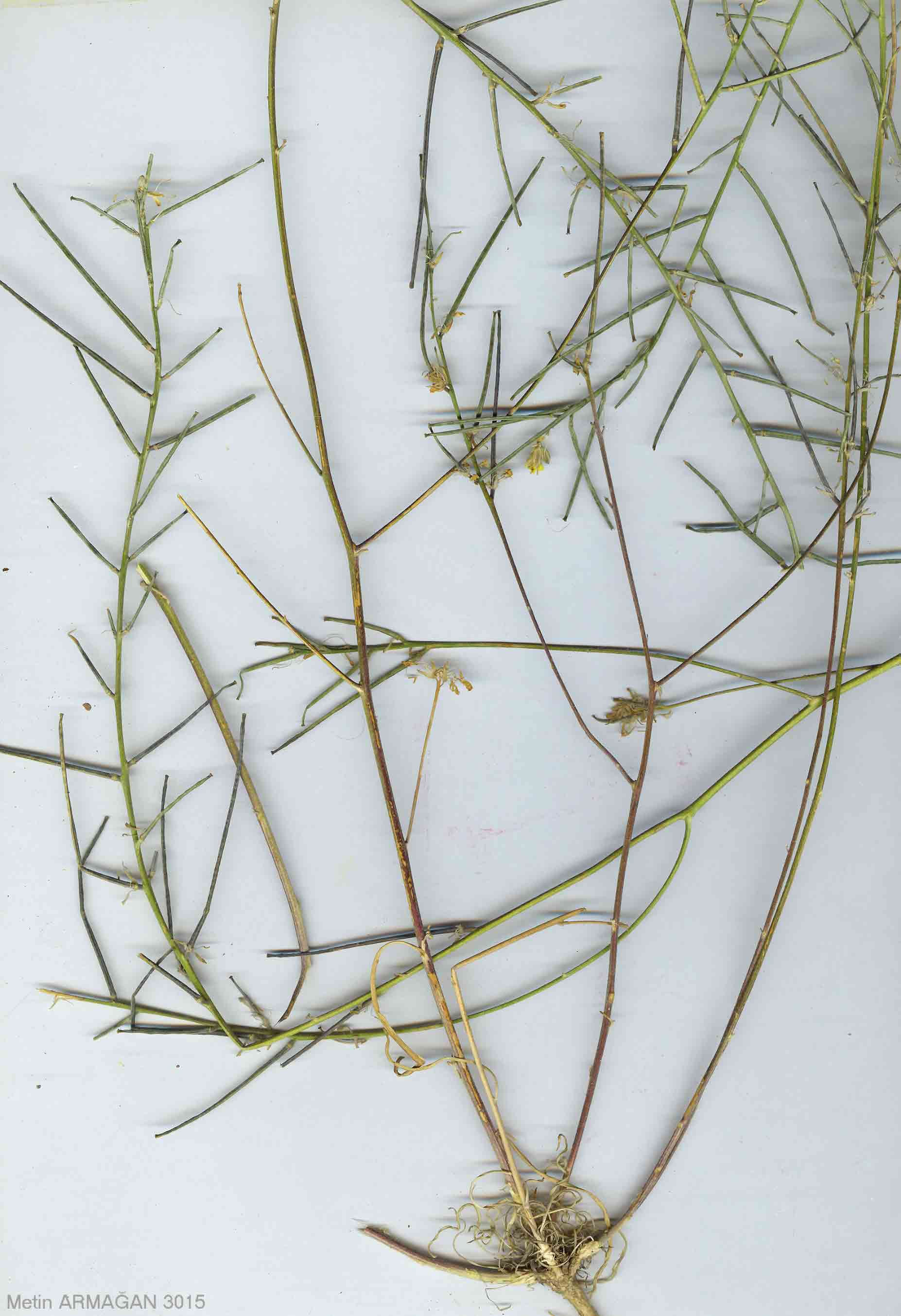 | E. crassipes Fisch. & Mey., Ind. Sem. Hort. Petrop. 1: 27 (1835). I?: Flora Azerbaidzhana, 4: t. 42 (1953). Map 27, p. 439. Perennial herb. Stems erect or ascending-erect, slightly winged, somewhat canescent with 2-fid hairs. Lower leaves linear-setaceous to linear, not more than 2 mm broad; cauline leaves linear; all grey-canescent witli 2-fid hairs. Sepals slightly saccate, 4-6 mm. Petals pale yellow to yellow, 8-9 mm. Siliquae spread-ing, ± terete, canescent with 2-fid hairs, 35-50 x 1-1.5 mm. Style very short and broad, stigma capitate. Fl. 5-7. Ledges, rocky slopes, fallow fields, sand dunes, s.l.-2100 m. Type: Caucasus, Talysch, Meyer (LE, photo. E!). Widespread. A2 Bilecik: Bilecik to Pazaryeri, 400 m, D. 36445! A3 Ankara: 25 km W of Beypazari, 500 m, Kühne 332. A4 Çankiri: Ilgaz, 1000 m, Bornm, 13784! A7 Gümüşane: Gümüşane, 1400 m, Stainton 8319! B2 Kütahya: Gediz, 850 m, D. 36896! B4 Ankara: Idris Da., 1300 m, Bilger 238! B5 Kayseri: Kayseri to Keykuhat, Bilger 240! B6 Malatya: 18 km E of Darende, 850 m, Hub.-Mor. 9245! B7 Diyarbakır: NE of Ergani, 1000 m. D. 29044! B8 Diyarbakır: Diyar-bakır to Bitlis, 1350 m, McNeill 495! B9 Bitlis: Tatvan, 1750 m, D. 22209! C2 Denizli: Honaz Da., 1500 m, Hub.-Mor. 5032! C4 Konya: 4 km S of Konya, 1040 m, Hub.-Mor. 9241! C5 Konya: Divle, nr. Ereğli, 1700 m, Siehe 1906: 275! C6 Seyhan: Osmaniye to Fevzipaşa, 900 m, Hub.-Mor. 13718! C8 Mardin: Mardin, Kamsi, Sim. 1888: 1129! W. Syria, N. Iran, Soviet Armenia. |