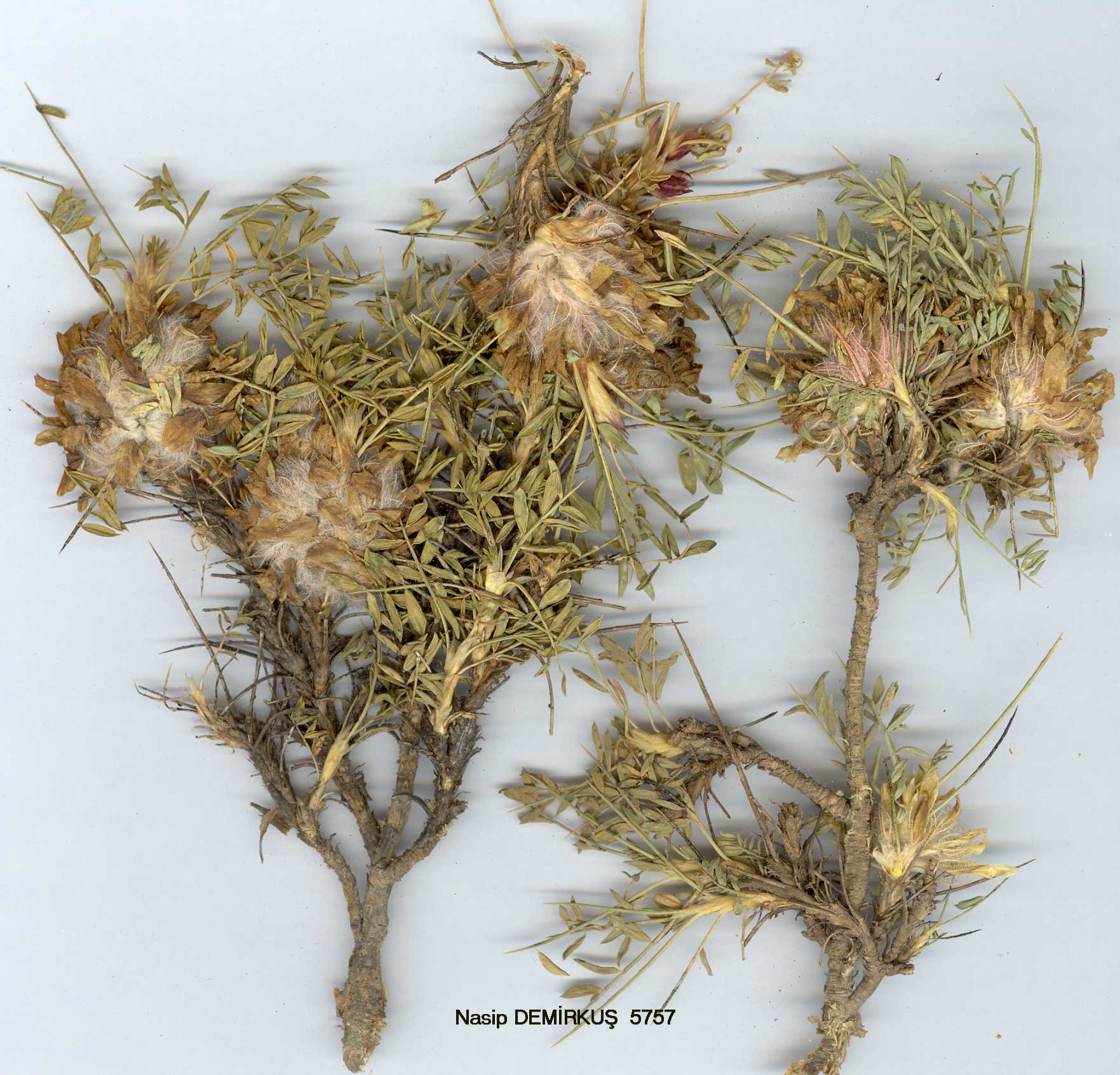 | A. aureus Willd. in Act. Acad. Berol. 29, t. 1 (1794); Syn: A. pseudotraga-cantha Pall., Astrag. 3, t. 3 (1800). Map 27, p. 127. Dwarf cushion-forming shrub, up to 25 cm. Leaf rachis spiny, 1-6 cm, straight, white-hairy or glabrescent, breaking off completely with age leaving bare woody stems. Leaflets 5-10 mm, linear-elliptic, often folded, mucronate, both surfaces glabrescent or sparsely white, spreading simple-hairy, usually glabrescent when mature, 4-6-paired. Stipules c. 10 mm, triangular-lanceolate, white-ciliate, united to more than halfway, sometimes purple-tipped. Inflorescence globose, 10-20-flowered. Bracts 5-12 mm, linear-lanceolate to ovate, usually navicular, glabrous, sometimes purple-tipped. Bracteoles absent. Calyx tubular, 8-13 mm, white-pilose, tube 3-5 mm; teeth setaceous. Corolla bright yellow; standard 15-20 mm, platonychioid, usually retuse. Legume unknown. Fl. 7-8. Stony slopes, 2150-3300 m. Type: [Turkey] 'Armenia', Toumefort. E. & N.E. Anatolia. A8 Çoruh: nr. Artvin (Grossheim 5: map 334). A9 Kars: E of Kağizman, N. side of pass between Akçay and Cumaçay, 2350 m, D. 46765! B8 Erzurum: mountains above Erzurum, 2150-2350 m, 1853, Huet! Bingöl: W. side of Bingöl Da., above Karlıova, 2500 m, D. 46183! Muş: S of Bingöl Da., nr. Gumgum, 2280 m, Kotschy 395! B9 Van: Artos Da., 2590 m, D. 22714! Bitlis: Süphan Da., 3300 m, D. 24762b! B10 Ağri: Doğubayzit, Hama Da., c. 2600 m, T. Bay top (ISTF 4861)! Iran, Caucasia, Ir.-Tur. element. Var. glabrescens Širj. is not maintained because glabrescent and hairy leaflets are present on all specimens. Var. chromo-lepis Boiss. is said to have purple-tipped bracts, but only one specimen (D. 46183) shows this character. In some other specimens a tendency to a faint purplish colour on the bracts can be detected, implying that this character is unreliable. |