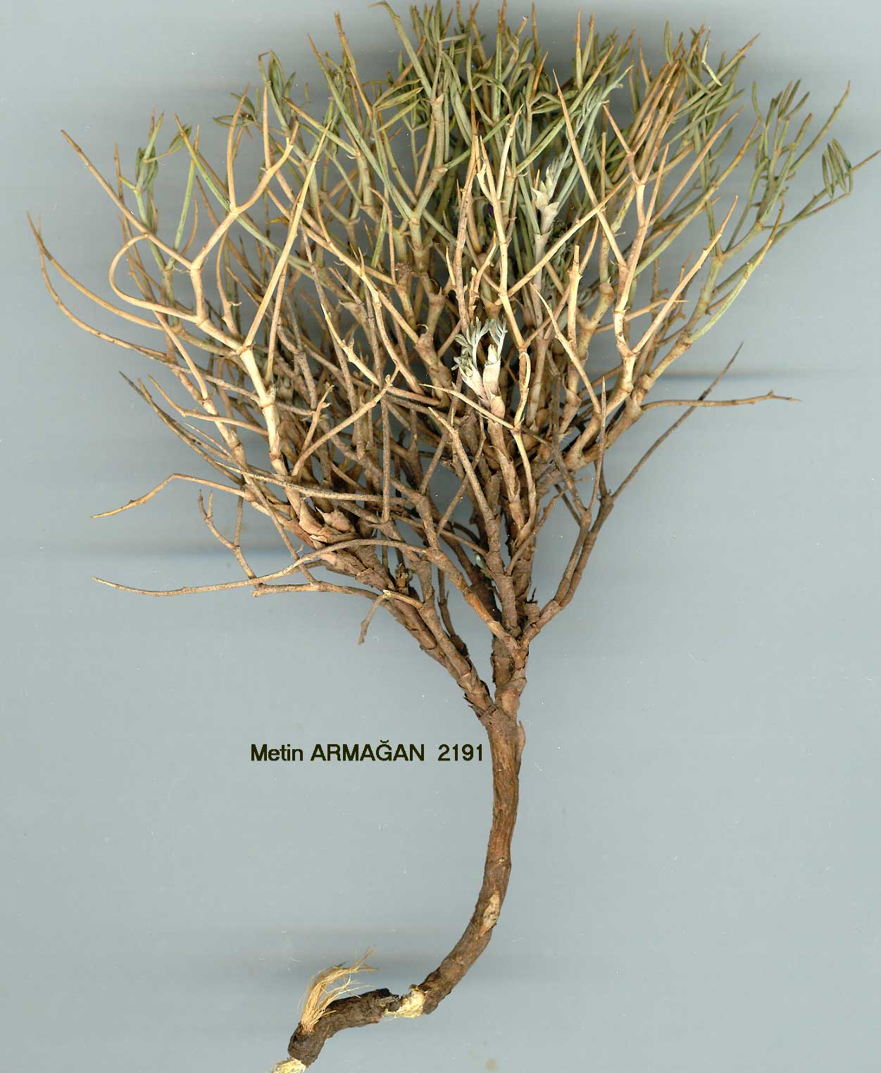 | O. cornuta (L.) Desv., J. Bot. Appl. 3:81 (1814). Syn: Hedysarum cornutum L., Sp. P1. ed. 2:1060 (1763). Ic: Grossh. Fl. Kavk. 5: t. 42 f. 1 (1952). Figure 15, p. 585. Intricately branched shrub forming spiny cushions or tufts up to 60 cm diam. and up to 50 cm high. Leaves with 2-5 pairs of linear or linear-lanceolate leaflets, with a sericeous or spreading-pilose indumentum on both surfaces; stipules adnate, scarious. Peduncles shorter than or subequalling leaves. Inflorescence 2-5-flowered. Calyx 4.5-6 mm including 2-2.5 mm subequal teeth. Corolla reddish purple, lavender, white or pink; standard cuneate or ± clawed, 12-15(-17) mm; wings 10-14 mm; keel 12-16 mm. Ovary glabrous or pilose. Fruit 9-13 mm long, glabrous or hirtulous, semi-orbicular, compressed, crested. Fl. 5-7. Rocky slopes and screes, 1200-3100 m. Described from the Orient, D. Gerard (Hb. Linn. 921/71, photo!). Widespread except in extreme W. & N.E. Anatolia. A4 Kastamonu: Ilgaz Da., 2100 m, Markgraf 10600! A5 Çorum: summit of Alagöz Da., N of Çorum, 1500 m, Coode & Jones 1932! A7 Gümüşane: Eliasdagh, Sint. 1894:6034! A9 Kars: Killik Da., W of Akçay-Cumaçay road, 2400 m, Watson et al. 3436! B2 Kütahya: Murat Da., above Banaz, 2000 m, Coode & Jones 2492! B3 Antalya: Çalbali Da., 2100 m, D. 15304! B5 Kayseri: Bakir Da., nr. Akoluk yayla above Kisge, 2000 m, D. 19517! B6 ıMaraş: d. Göksun, Binboğa Da., above Yalak, 2500 m, D. 20150! B7 Erzincan: Kara Da., nr. Erzincan. Balls 271! B8 Erzurum: 20 km from Hinis to Pasinler, 1900 m, D. 46348! B9 Bitlis: Pelli Da., above Pelli, D. 22478! B10 Van: 6 km from Özalp to Saray, 2250 m, D. 44385! C2 Antalya: Susuz Da.. W of Elmali, 2000 m, Sorger 63-35-42. C3 Isparta: d. Sütçüler, Dedegöl Da., 2500 m. D. 16040! C4 Içel: Mut to Karaman 43, km N of Mut, 1600 m, Sorger 66-34-18. C5 Niğde: Ala Da., 2060 m, Parry 44! C6 Maraş: Ahir Da., Balls 927! Caucasia, W. Syria. Iran, Afghanistan, Turkestan. Ir.-Tur. element. A distinct species easily recognised by its spiny shrubby habit, but varying considerably inthe shape and size of the leaflets, density of indumentum and corolla size. Širjaev (op. cit. p. 25-26, 1925) recognised several forms. Sect. Lophobrychis Hand.-Mazz. Annuals; wings as long as calyx; ovary l-2(-3)- ovulate. |