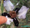 | I. paradoxa Steven in Mem. Soc. Nat. Most 5:355 (1817). Figure 14. Map 57. Plant 10-25(-40) cm. Rhizome compact, non-stoloniferous. Leaves 4-6, falcate, greyish-green, 0.2-0.5 cm broad. Bract and bracteole 4-8 cm, green or tinged pinkish-brown. Perianth tabe 1.5-3 cm; falls ± oblong, 2.5-4 x 1-1.5 cm, truncate at apex with revoiute margins, upper surface almost entirely covered with a dense blackish-purple or violet, rarely golden-brown beard, ground colour usually dark purple or violet with a pale V-shaped mark in centre and white marks at apex, sometimes also on margins; standards broadly obo-vate, 5-9 x 3.3-6 cm, white or purple, often strongly veined deep violet, apexemarginate; style branches whitish to golden-yellow spotted brown, or dark purple, 2.1-3 x 1.1-1.5 cm, with short crenulate erect lobes 0.3-0.4 x 0.4-0.6 cm. Capsule and seeds not seen. Several colour forms have been named but in Turkey only the following has been recorded: f. choschab (Hoog) Mathew & Wendelbo in Rech. fil., Fl. Iranica 112:31 (1975). Syn: /. paradoxa Steven var. choschab Hoog in Gard. Chron. ser. 3, 29:104, f. 45 (1901);/. medwedewii Fomin in Monit. Jard. Bot. Tiflis 14:43 (1909). Ic: J. Roy. Hort. Soc. 90: f. 21 (1965), as var. choschab; Rech. fil., Fl. Iranica 112: t. 13 f. 1 (1975), as /. paradoxa; Mathew, The Iris col. t. 5 (1981). Falls deep violet with a blackish-violet beard; standards white or lilac, strongly veined purple; style branches cream or golden-yellow, heavily spotted brown or purplish. Fl. 4-6. Edges of fields, stony mountain steppe, 1750-2800 m. Type: [Turkey B9 Van] between the East Armenian town of Van and the lake of Urrniah in North-western Persia .... near the small village of Choschab (Hoşap), a collector for Messrs. Van Tubergen (specimen not traced). E. Anatolia. B9 Van: 5 km W. of Gürpinar, 1750 m, Mathew & Tomlinson 4212! N.W. Iran, Transcaucasia. Ir.-Tur. element. |